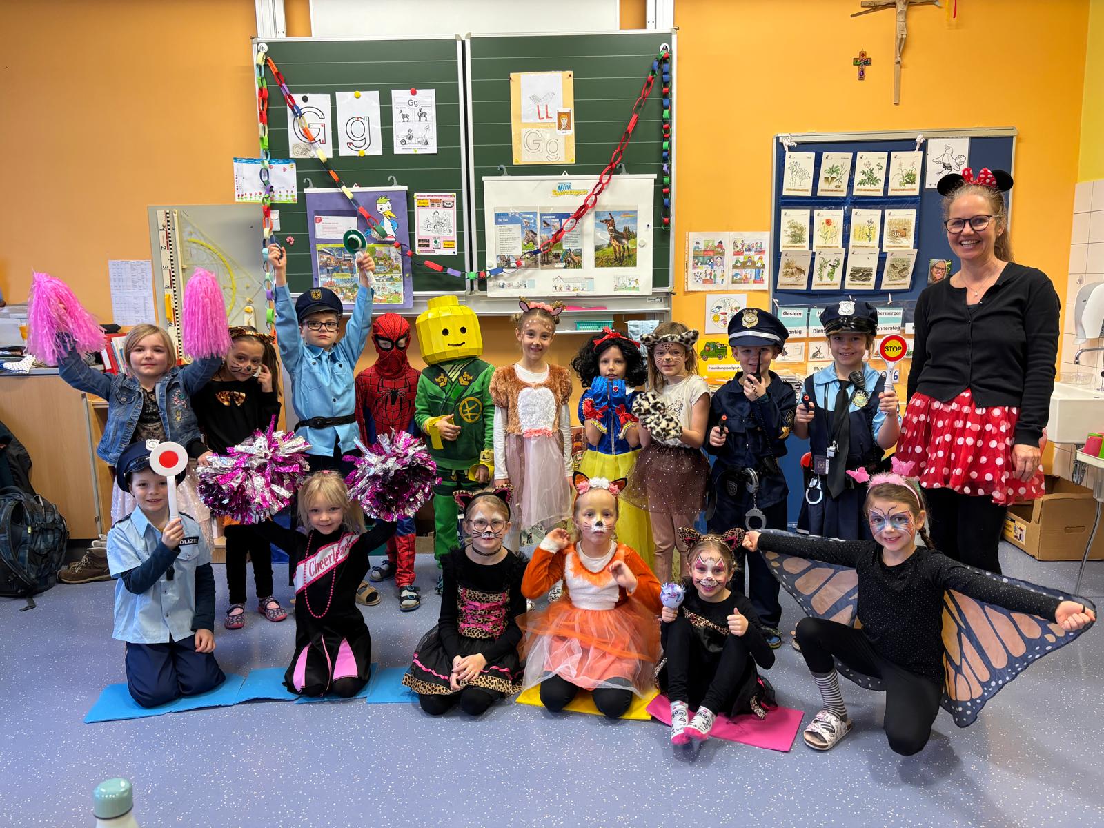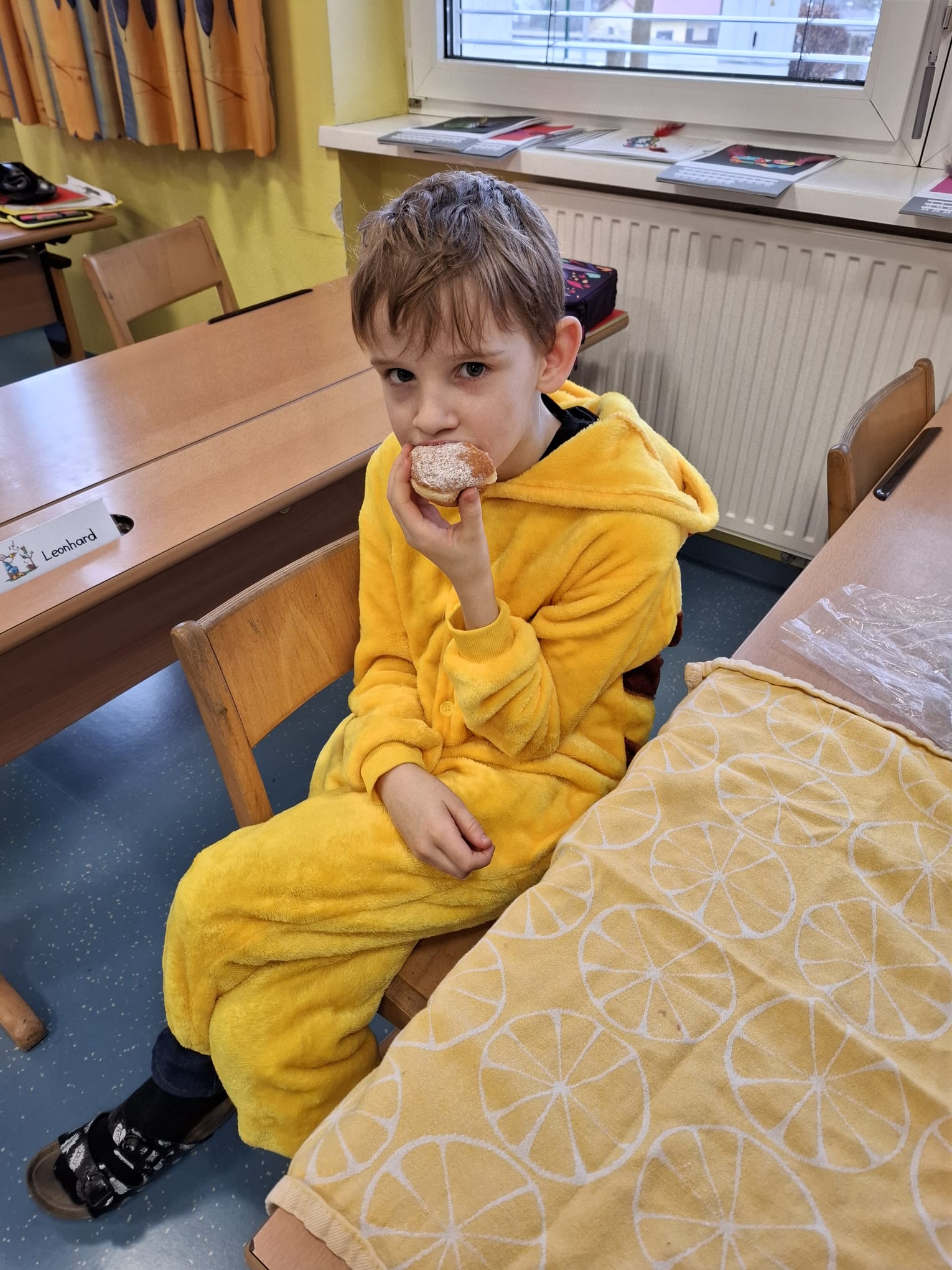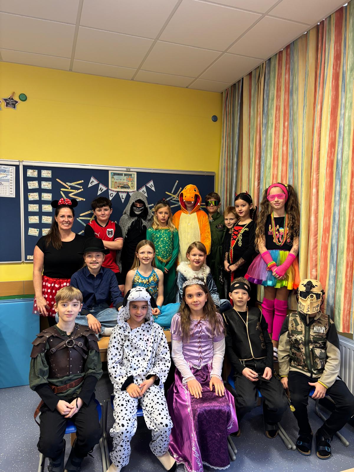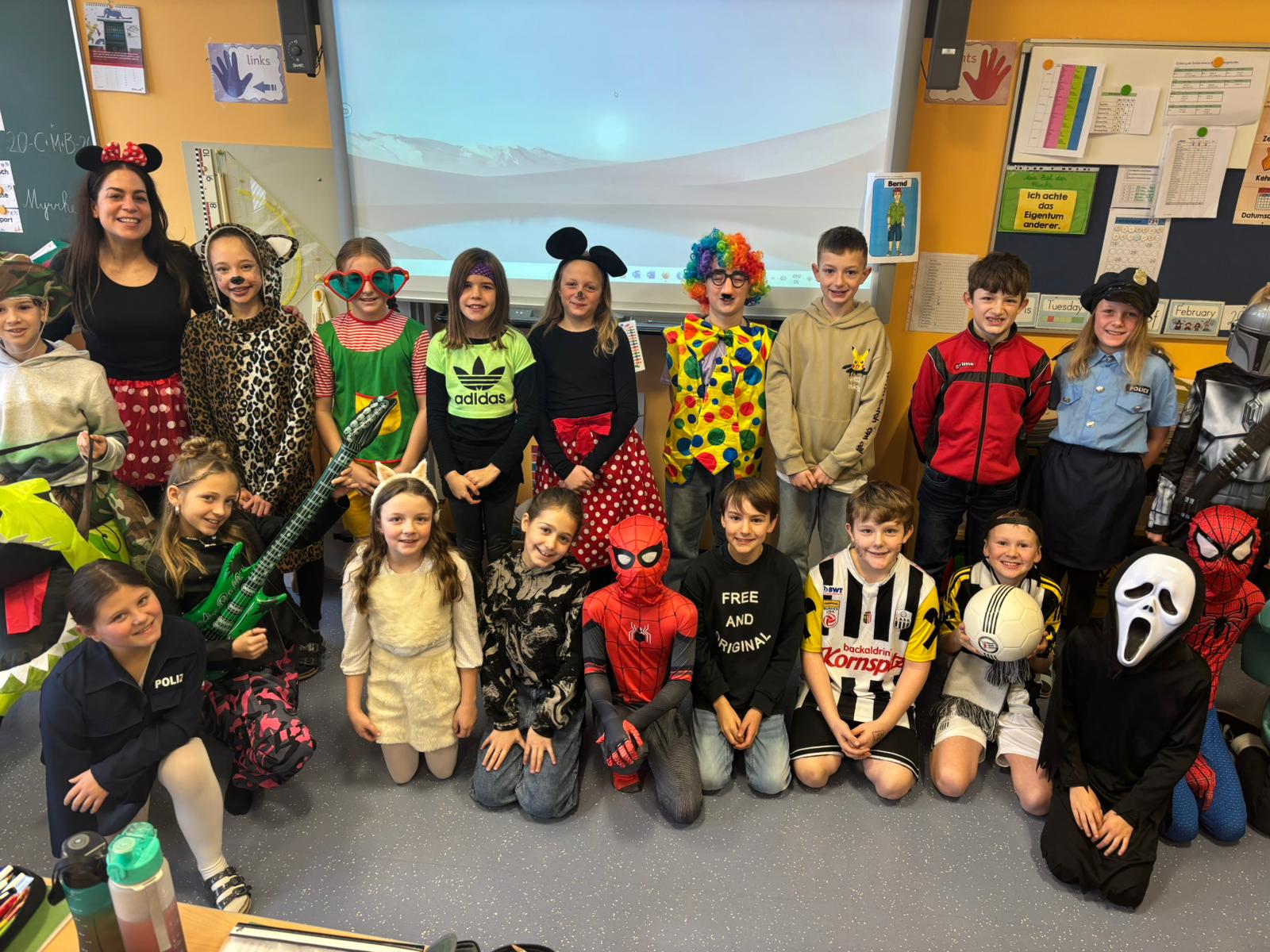 Fasching in der Schule Da der Faschingsdienstag in die Ferien fällt, durften alle schon eine Woche früher verkleidet in die Schule kommen! Wir bedanken und ganz herzlich beim Elternverein für die köstlichen Faschingskrapfen!