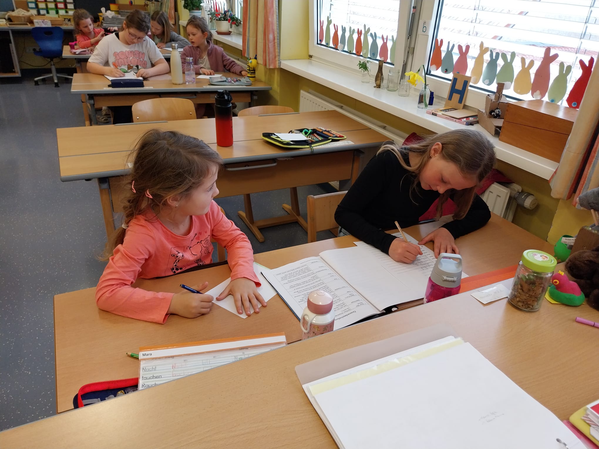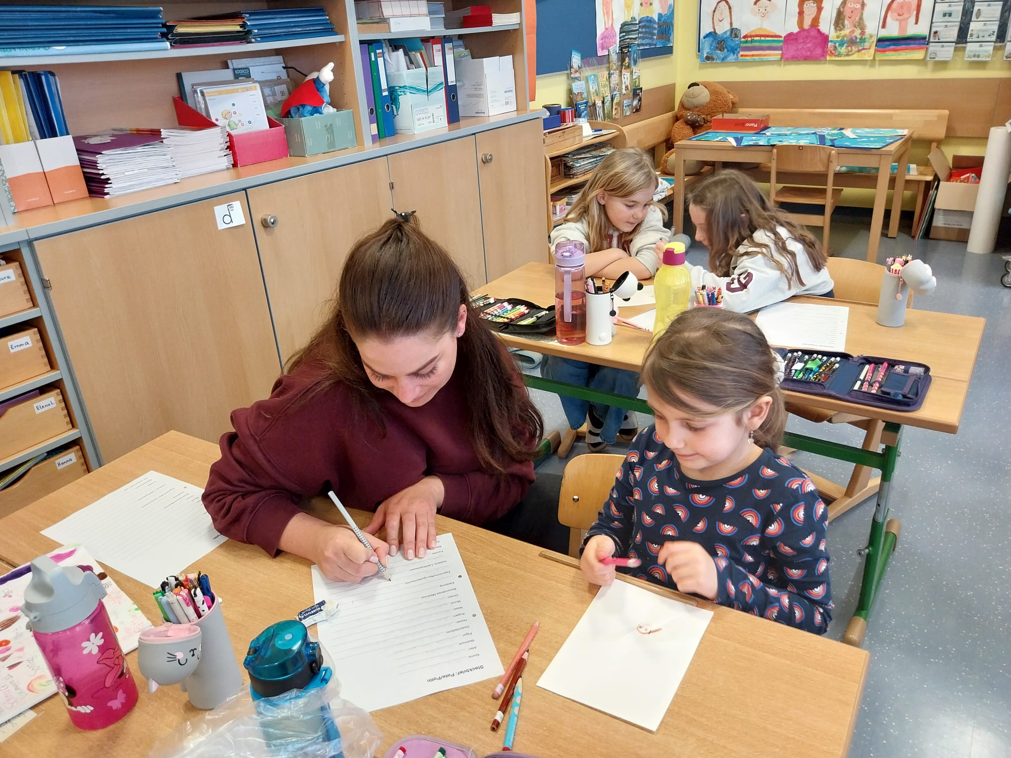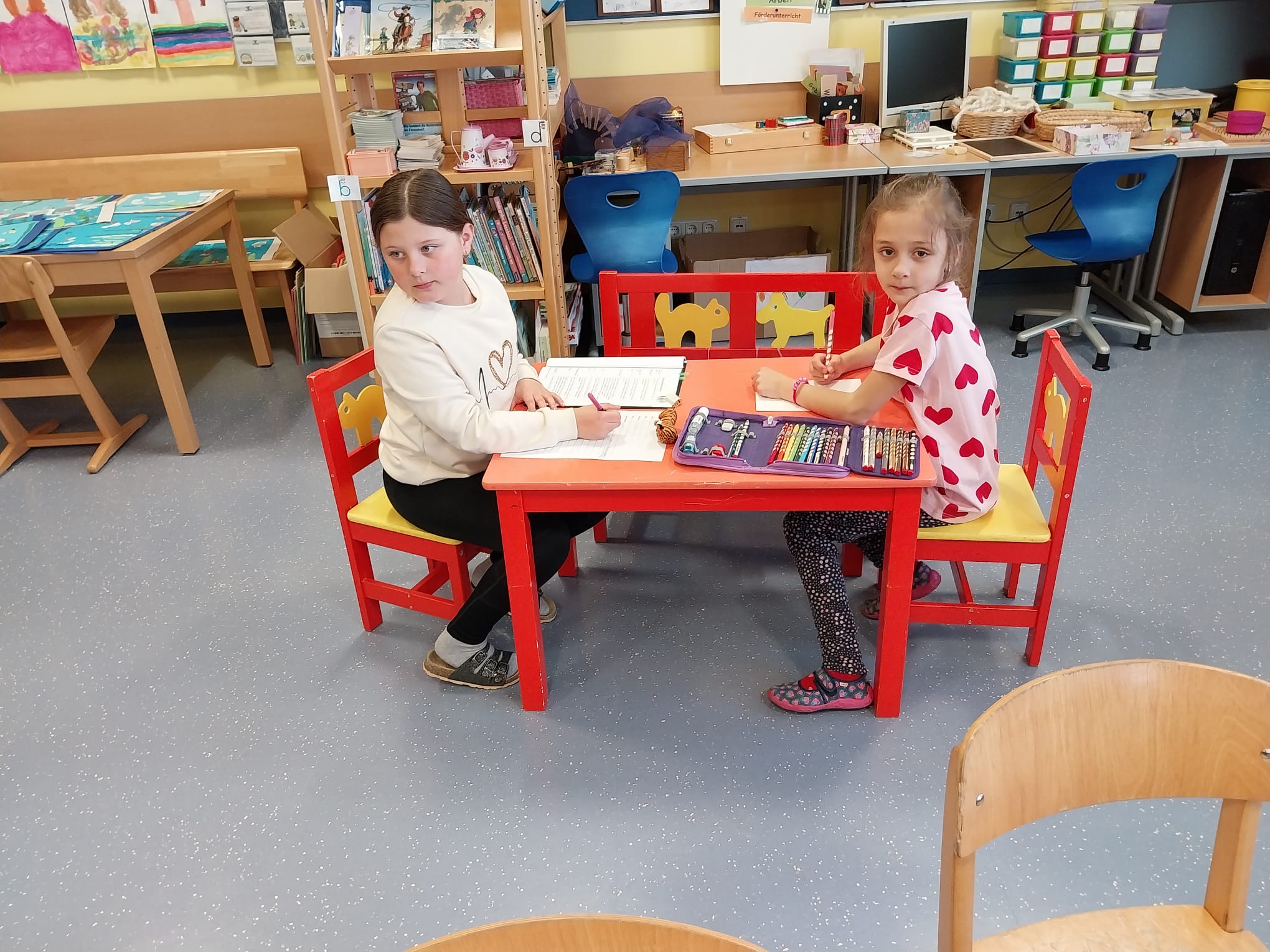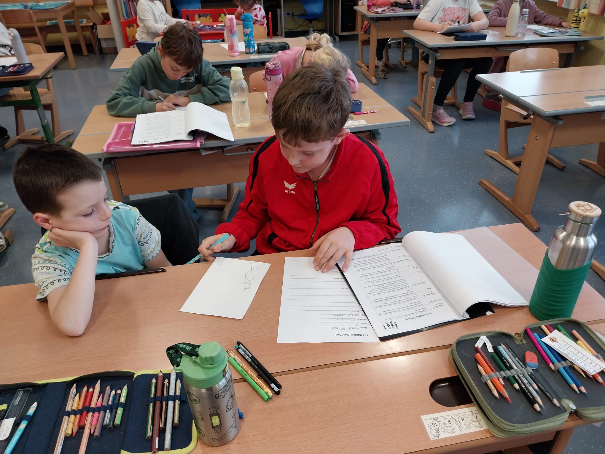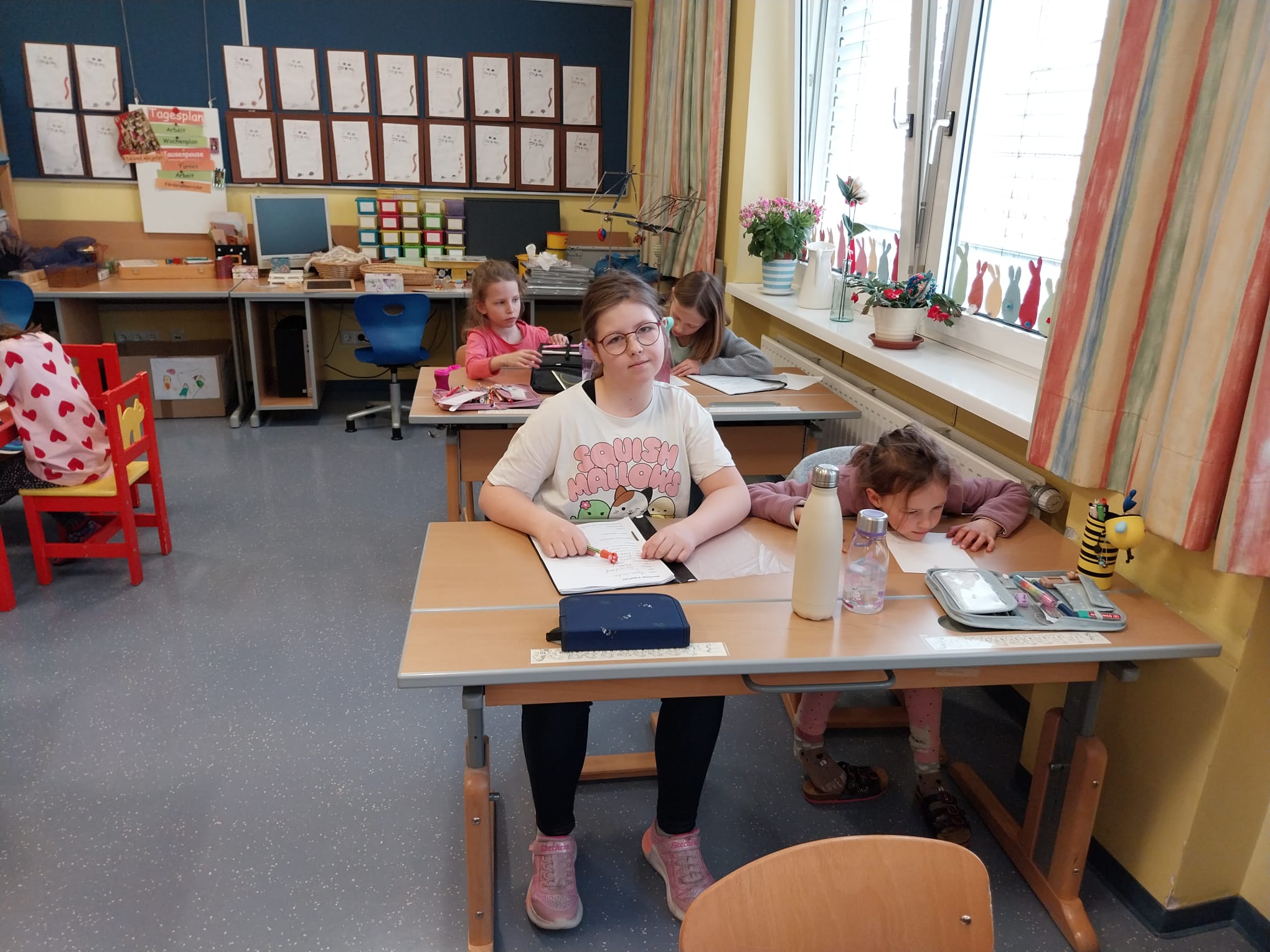 Personenbeschreibung mit den Paten Die Paten der 4. Klasse schreiben eine Personenbeschreibung über ihre Patenkinder der 1. Klasse. Eine ganz tolle Idee, die allen Kindern Freude machte!