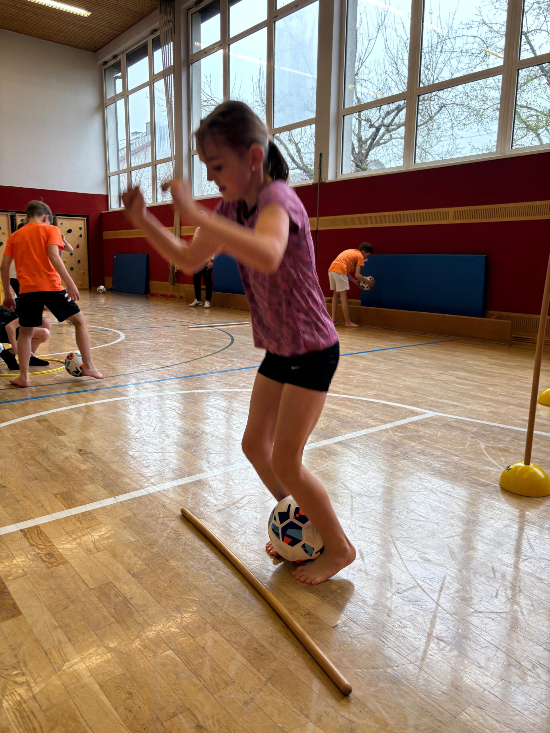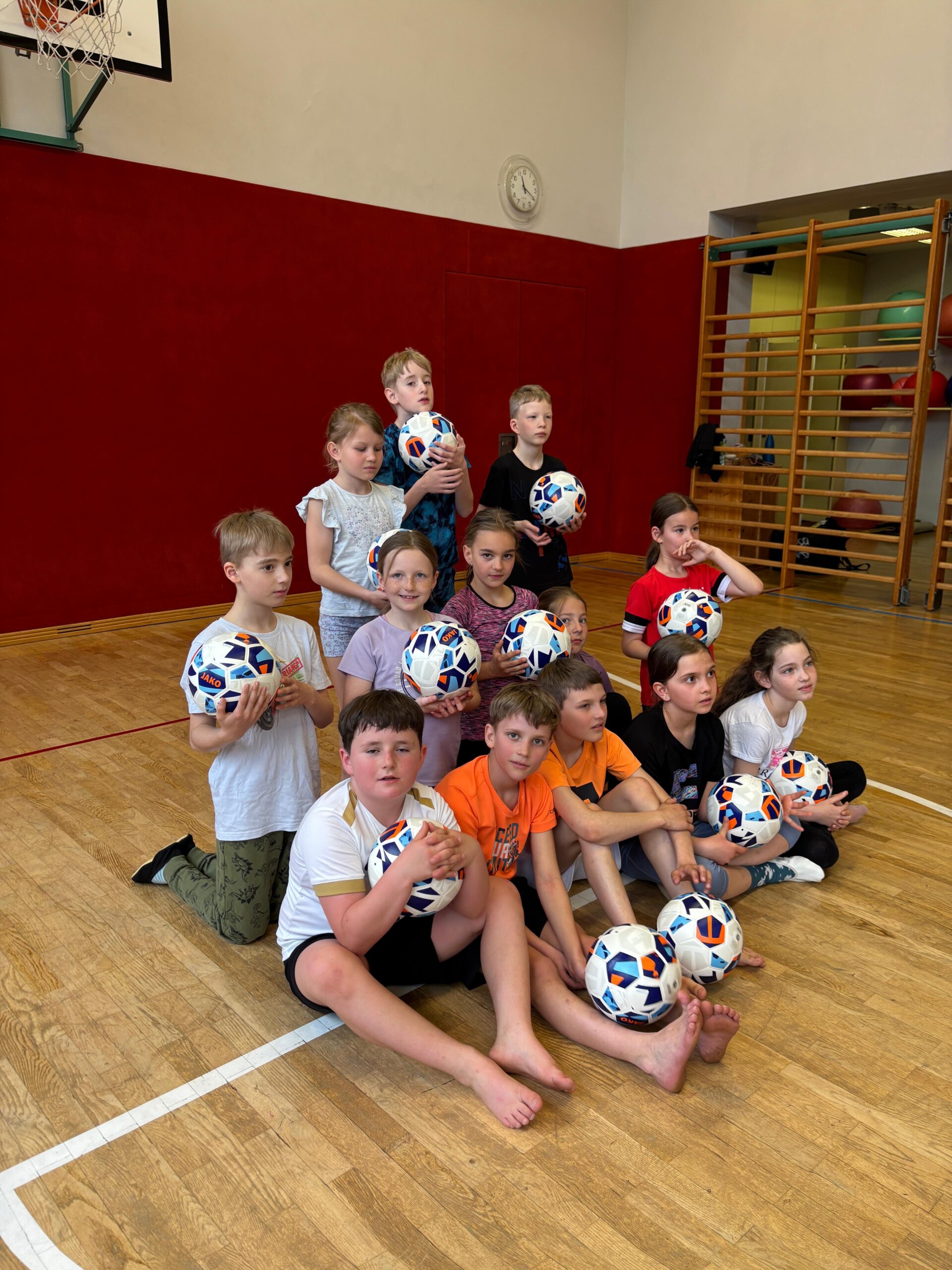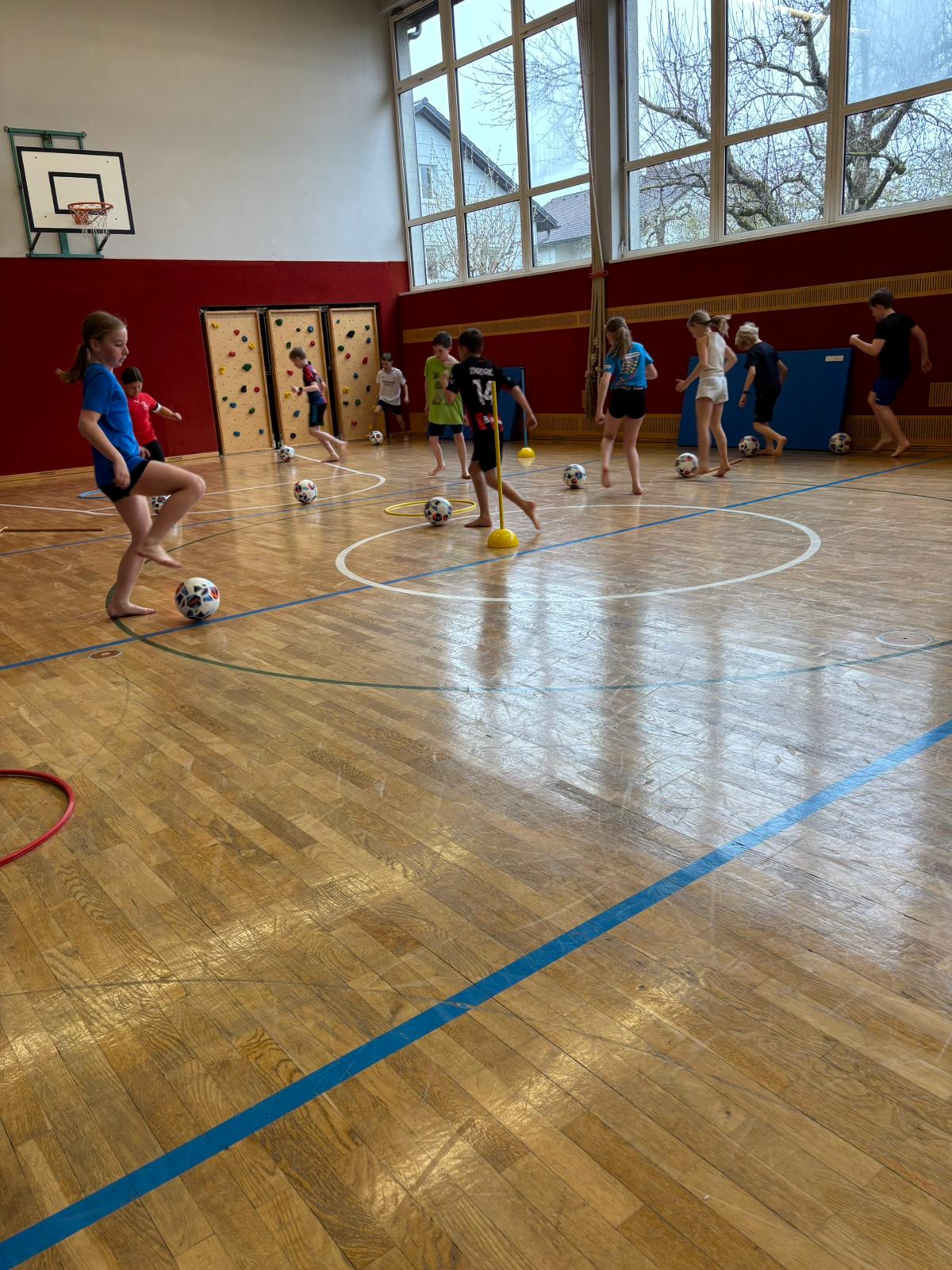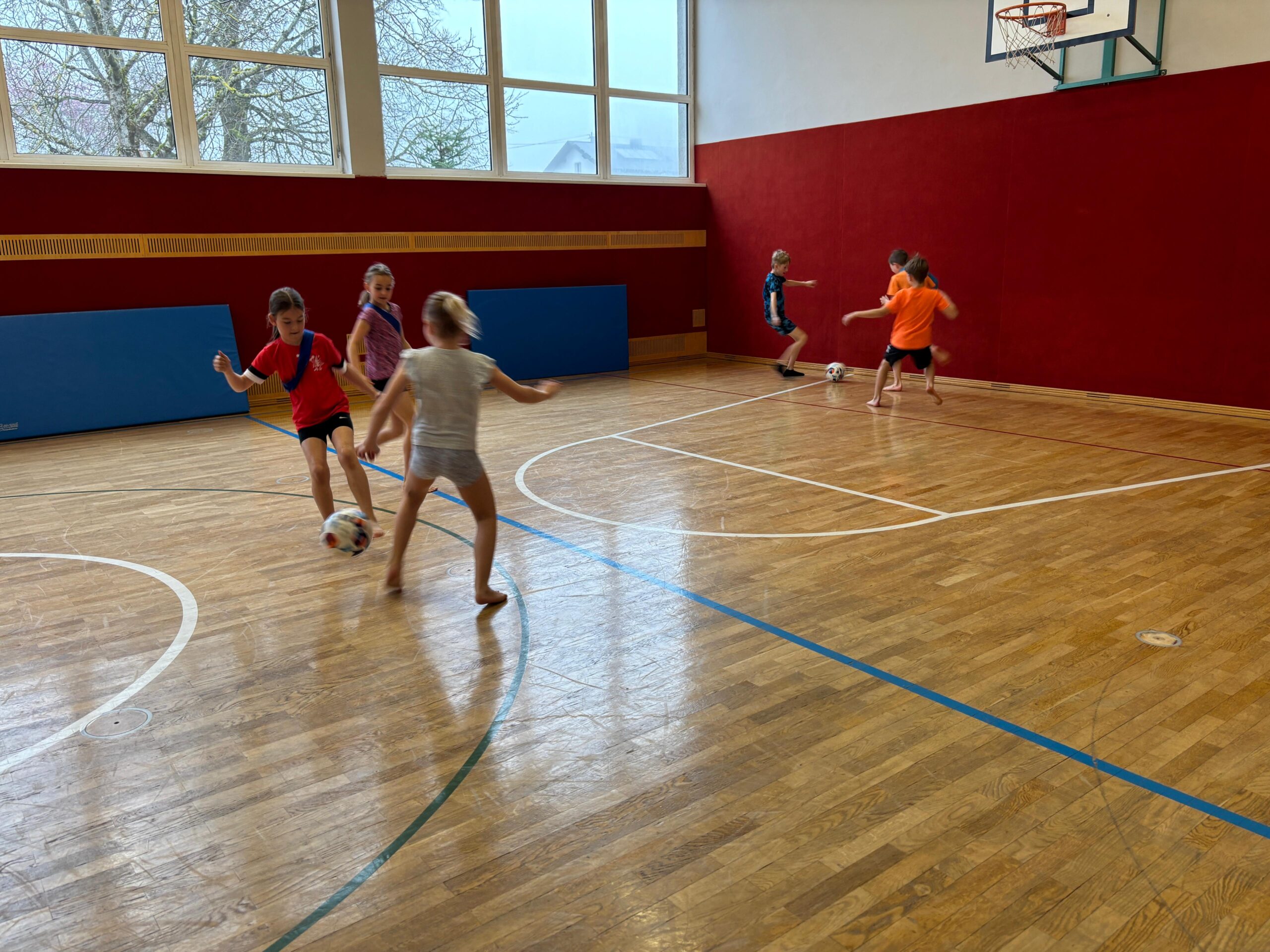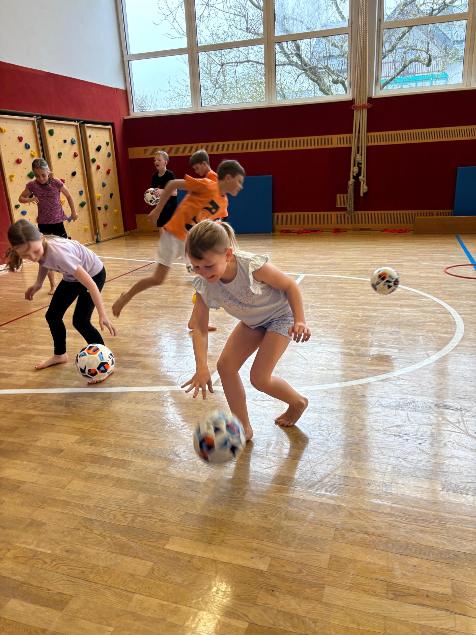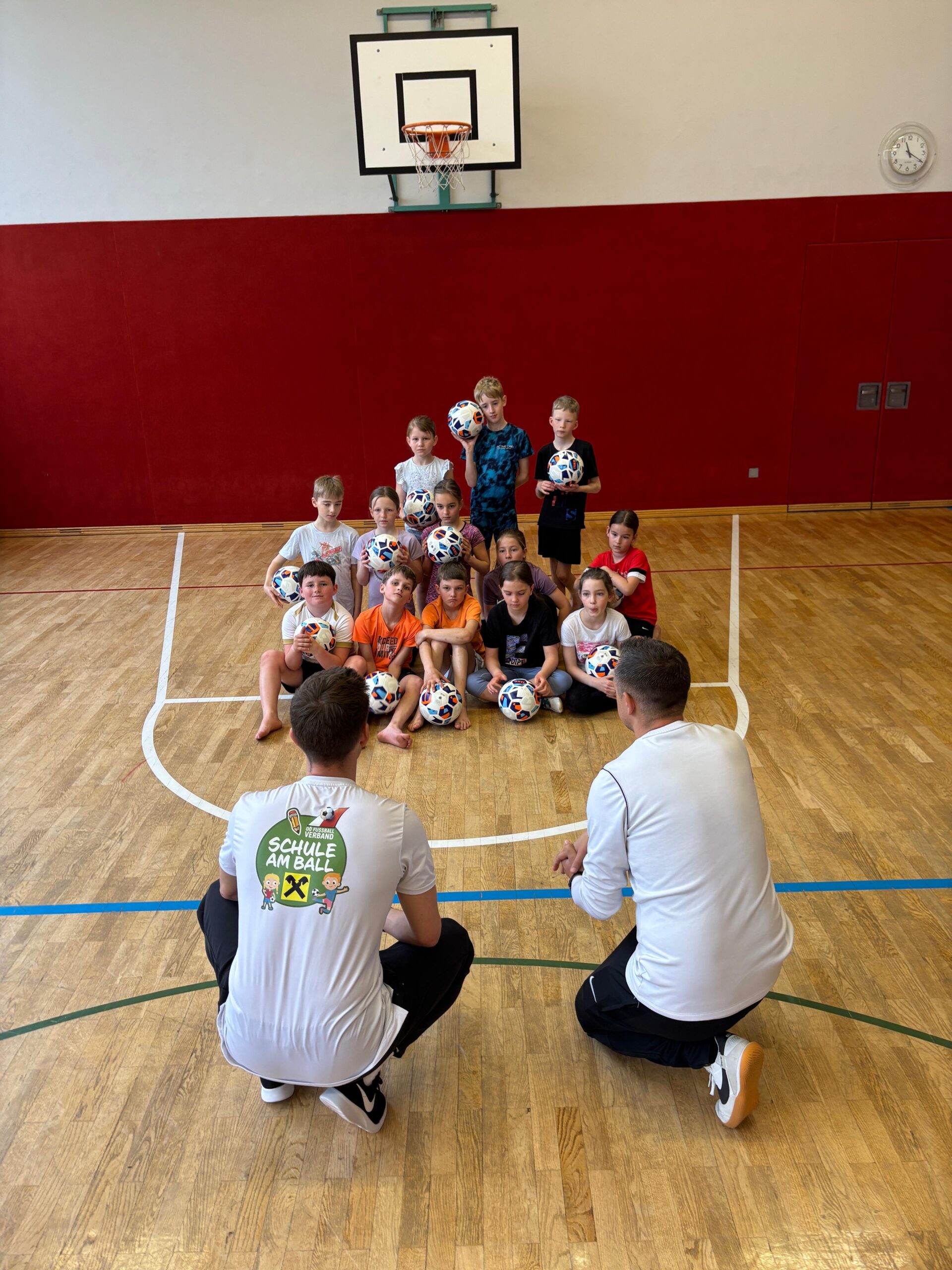 Am letzten Freitag ging es in der dritten und vierten Klasse besonders sportlich zu: Mit Günther Lang und Ali Katzmaier kam das Projekt „Schule am Ball“ zu uns an die Schule. In einer abwechslungsreichen Turnstunde zeigten die beiden den Kindern spielerisch wichtige Techniken rund um das Fußballspielen. Zum Abschluss durfte natürlich ein kurzes Match nicht fehlen, bei dem die Kinder ihr Können gleich ausprobieren konnten. Die Begeisterung war groß: Eine Stunde lang wurden alle ordentlich ausgepowert und erhielten wertvolle Impulse zu Bewegung, Teamgeist und Zielsetzung.