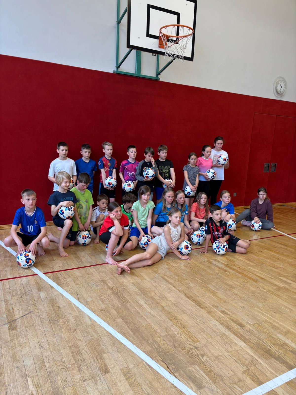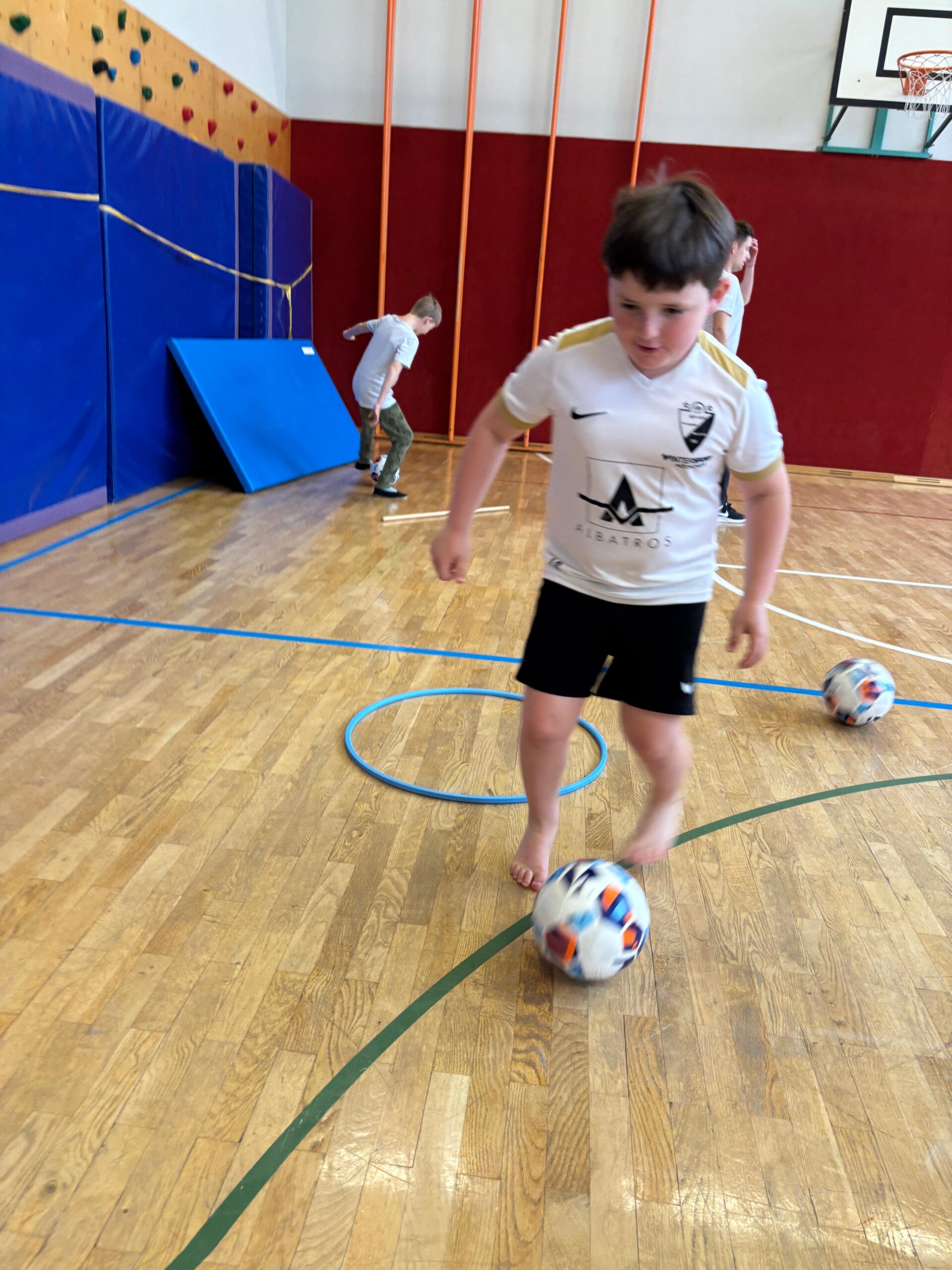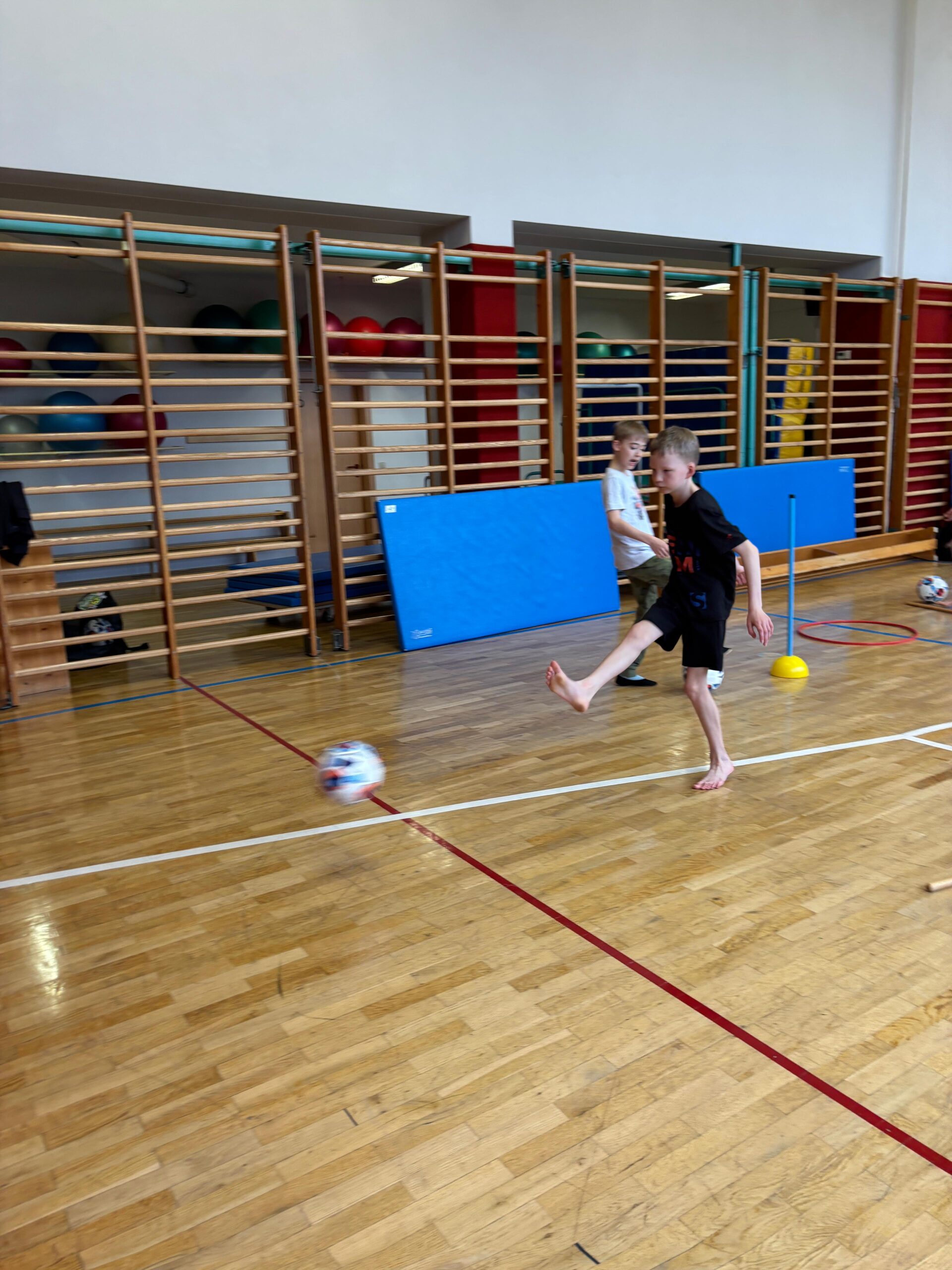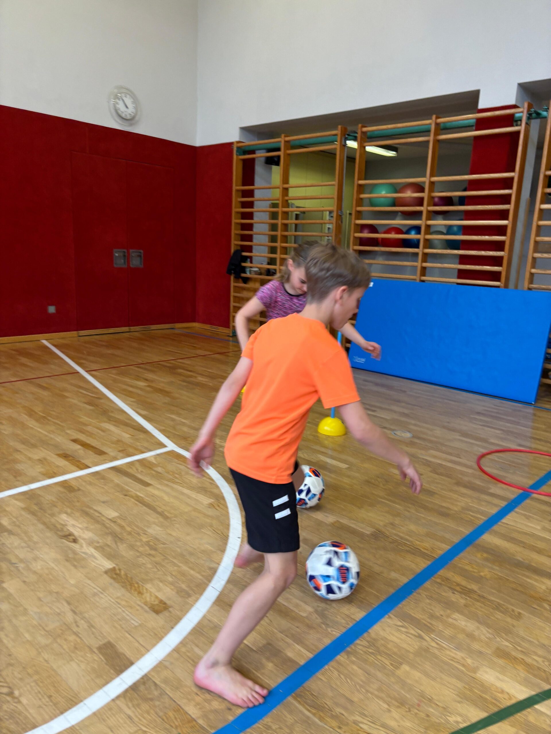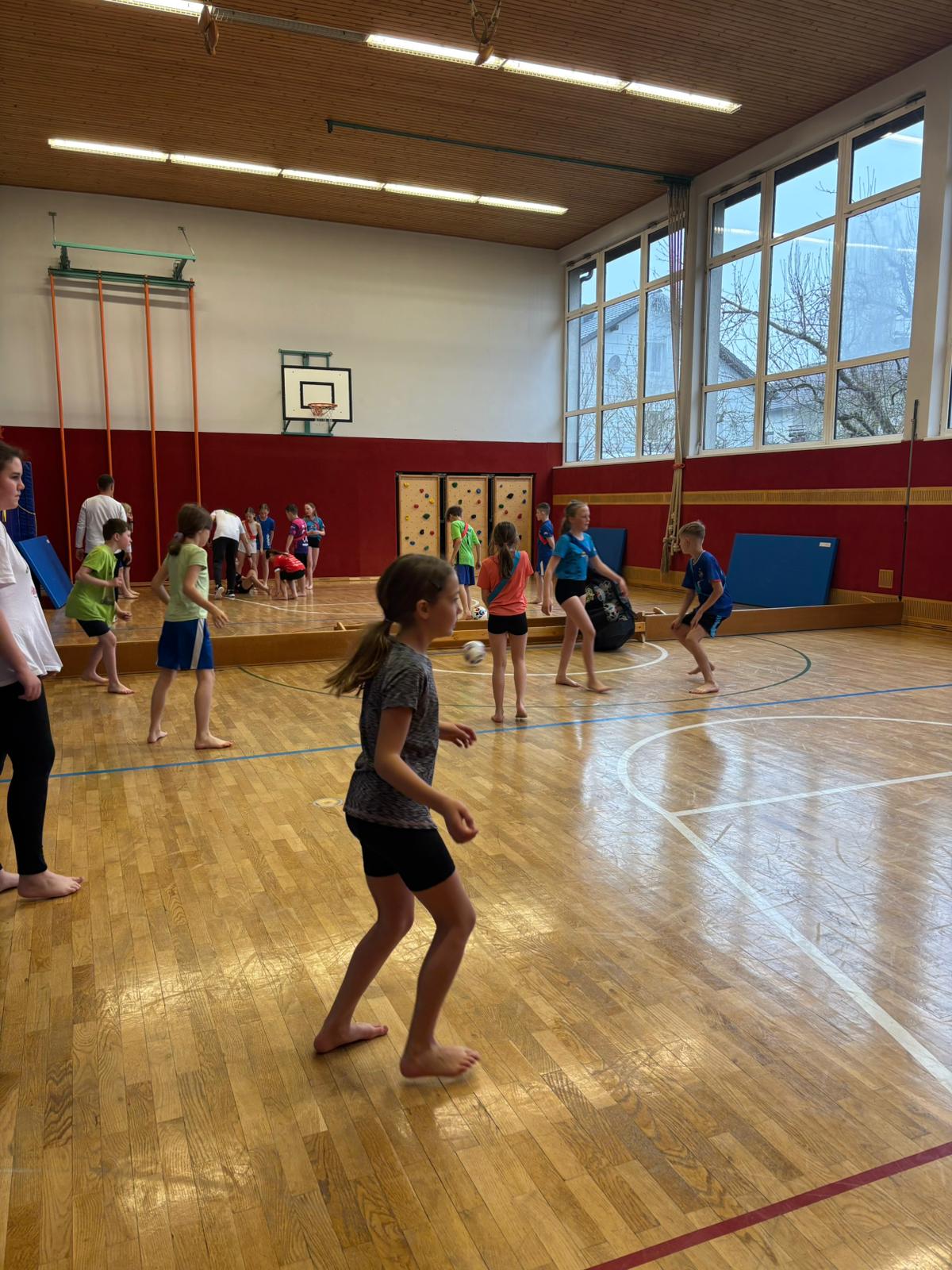 Am letzten Freitag ging es in der dritten und vierten Klasse besonders sportlich zu: Mit Günther Lang und Ali Katzmaier kam das Projekt „Schule am Ball“ zu uns an die Schule. In einer abwechslungsreichen Turnstunde zeigten die beiden den Kindern spielerisch wichtige Techniken rund um das Fußballspielen. Zum Abschluss durfte natürlich ein kurzes Match nicht fehlen, bei dem die Kinder ihr Können gleich ausprobieren konnten. Die Begeisterung war groß: Eine Stunde lang wurden alle ordentlich ausgepowert und erhielten wertvolle Impulse zu Bewegung, Teamgeist und Zielsetzung.