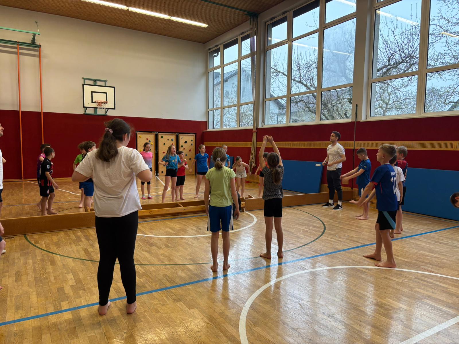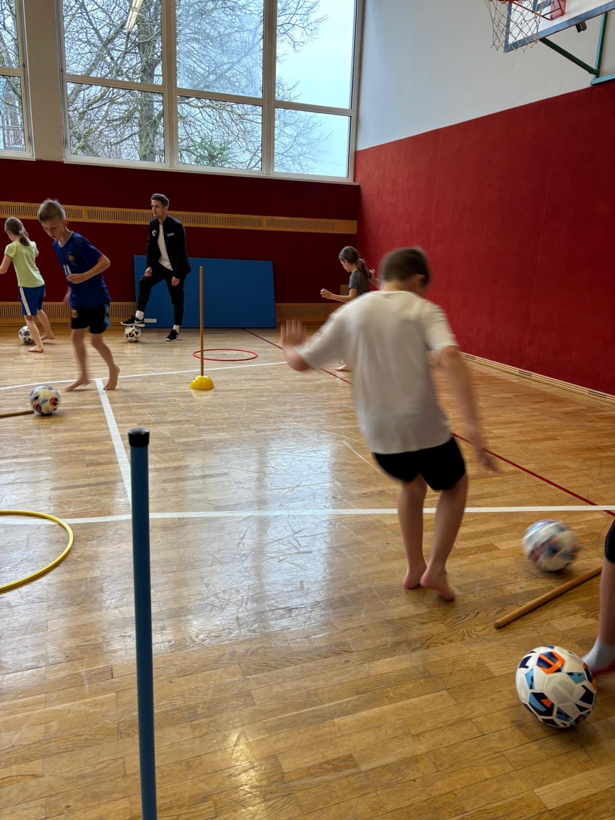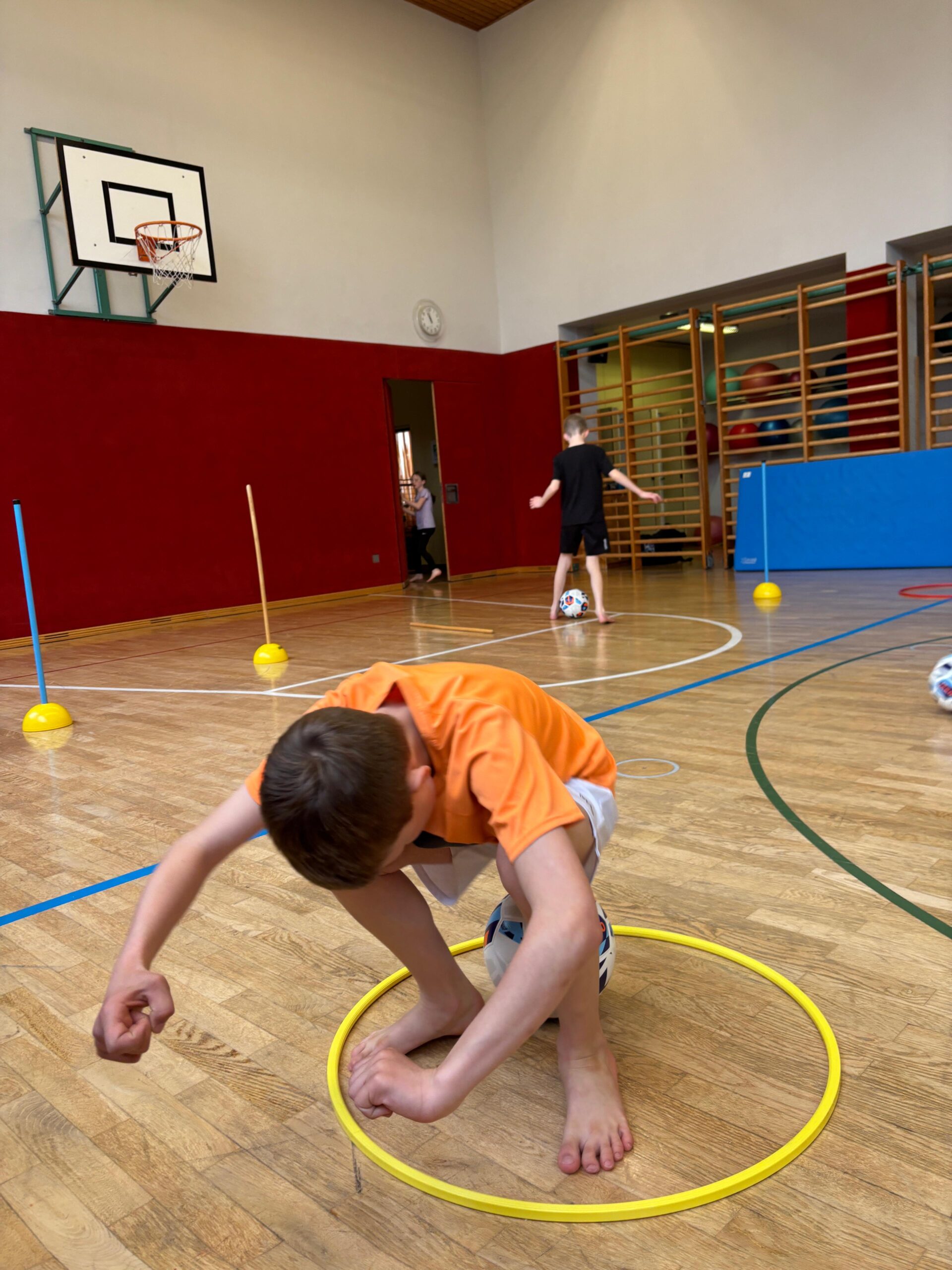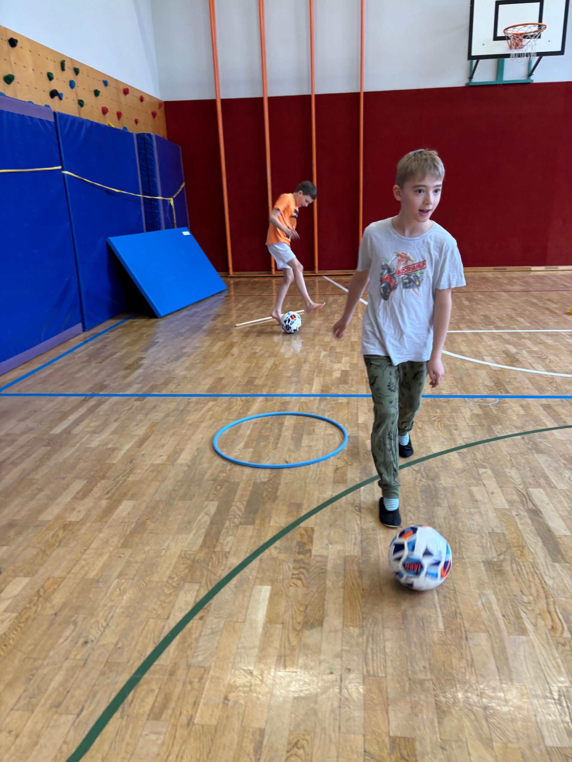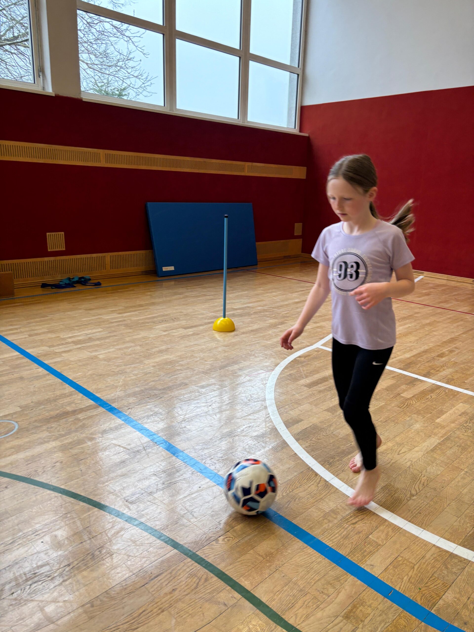 Am letzten Freitag ging es in der dritten und vierten Klasse besonders sportlich zu: Mit Günther Lang und Ali Katzmaier kam das Projekt „Schule am Ball“ zu uns an die Schule. In einer abwechslungsreichen Turnstunde zeigten die beiden den Kindern spielerisch wichtige Techniken rund um das Fußballspielen. Zum Abschluss durfte natürlich ein kurzes Match nicht fehlen, bei dem die Kinder ihr Können gleich ausprobieren konnten. Die Begeisterung war groß: Eine Stunde lang wurden alle ordentlich ausgepowert und erhielten wertvolle Impulse zu Bewegung, Teamgeist und Zielsetzung.