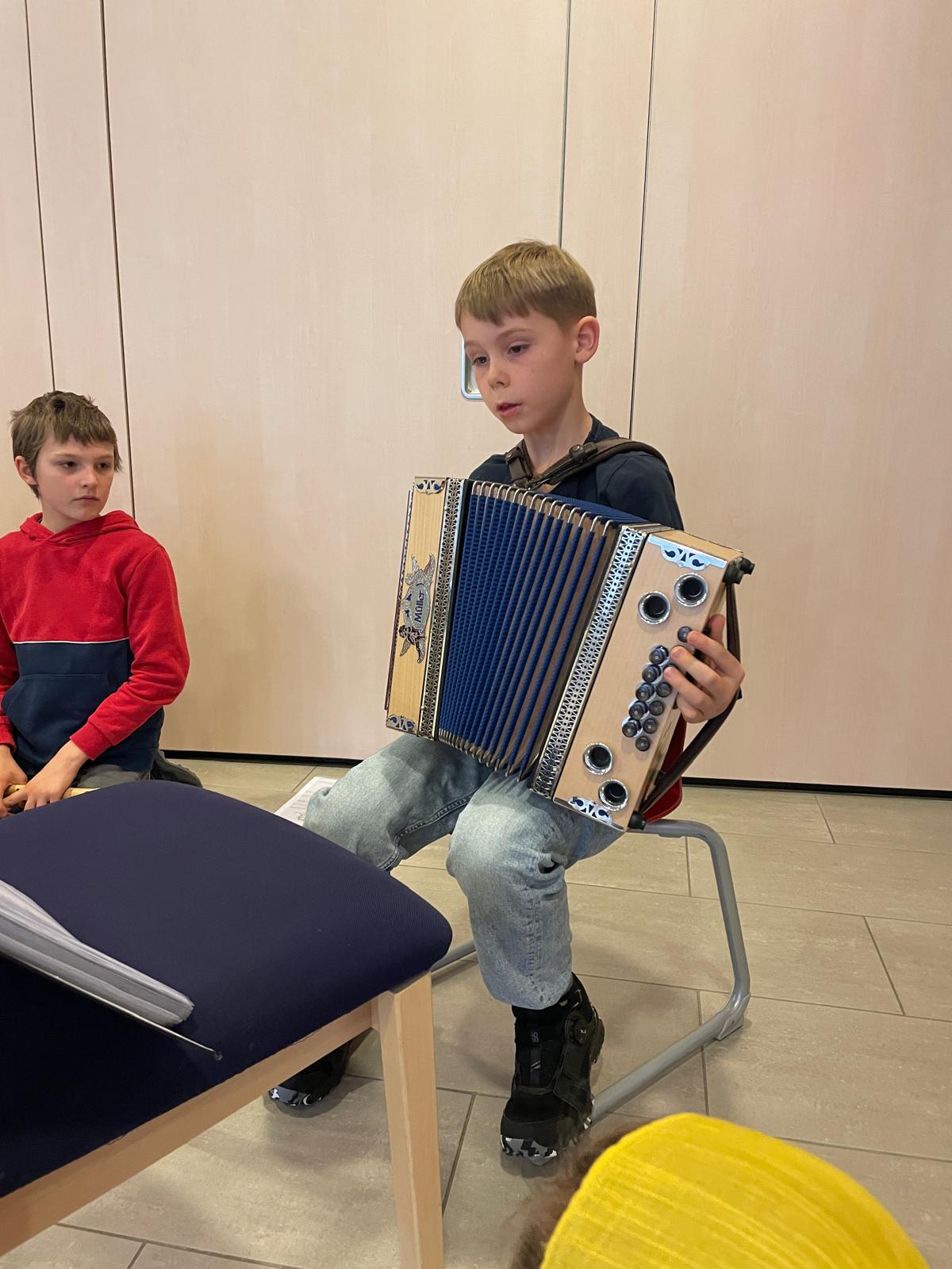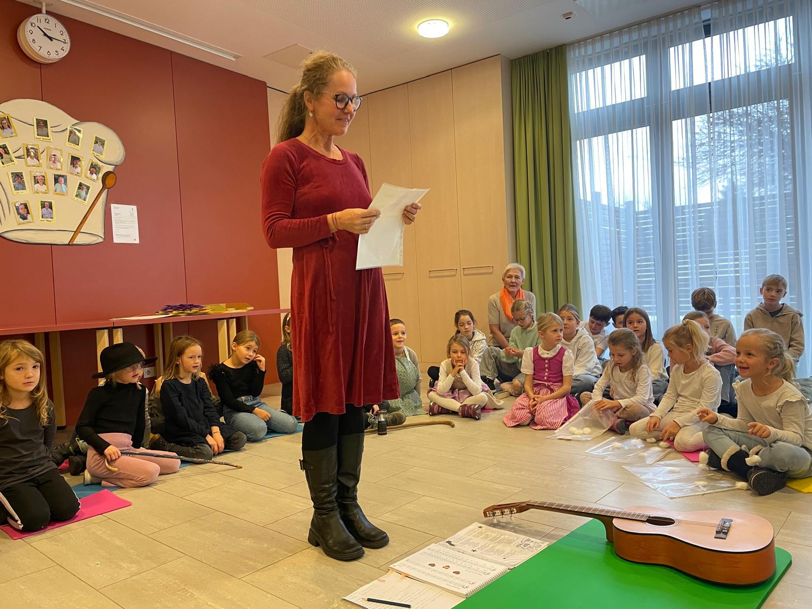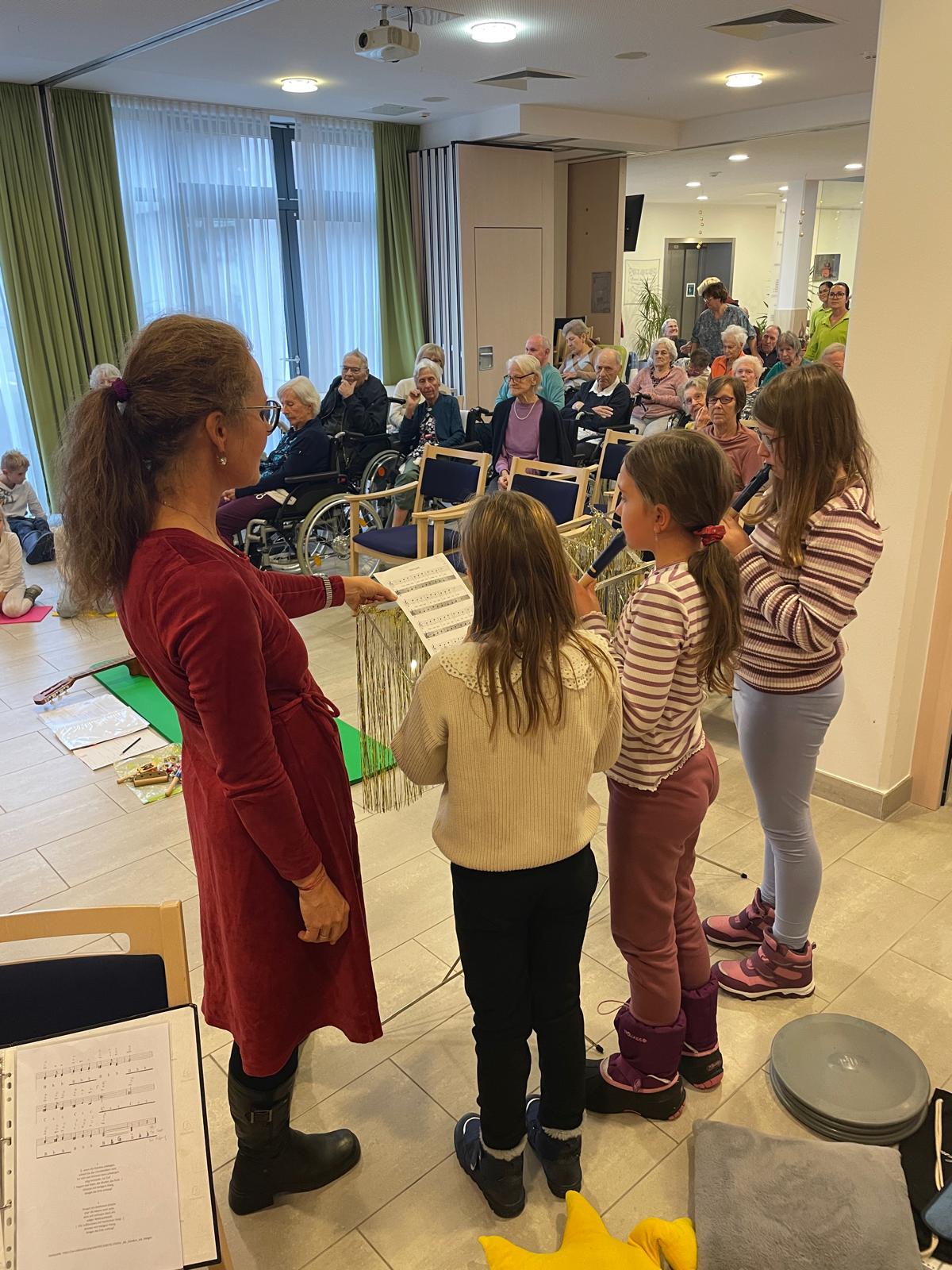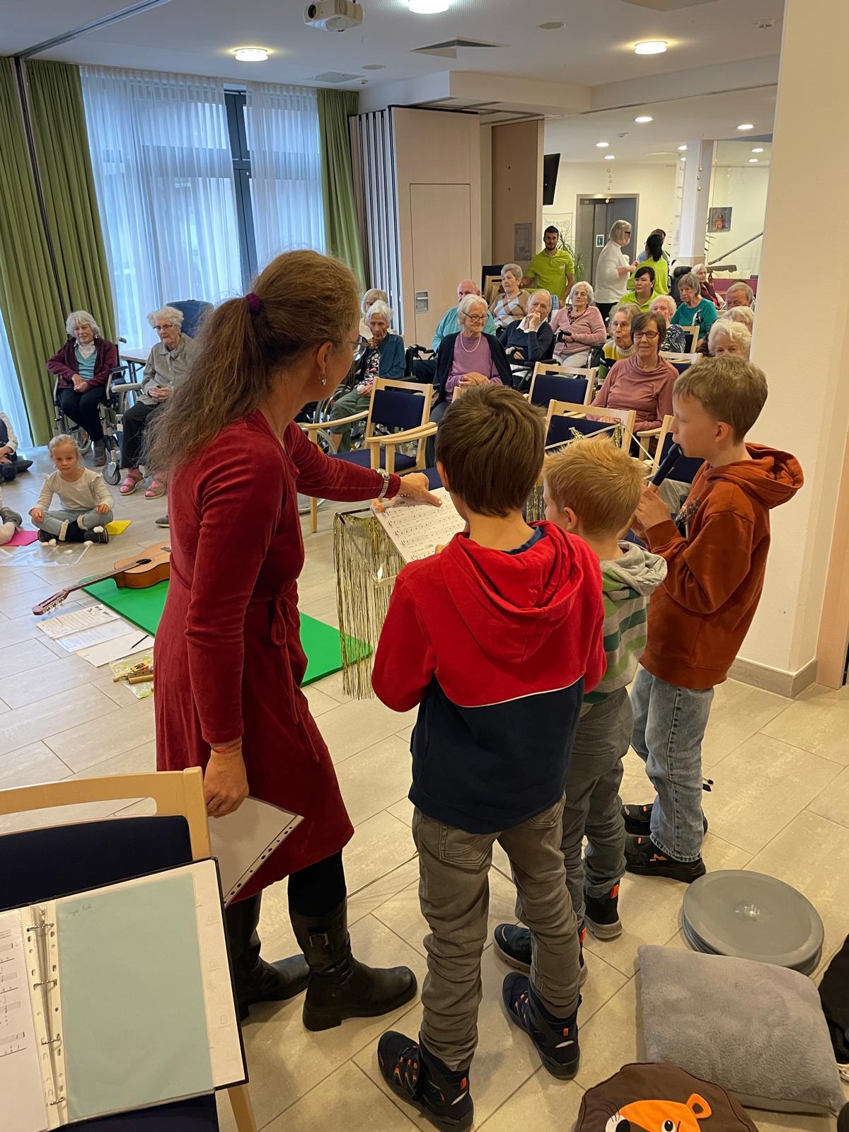 Projekt „Wenn ich einmal so alt bin…“ Frau Mayr organisierte einen Besuch im Altenheim Walding mit der 1. Klasse. Mit dabei waren auch Musikanten aus den anderen Klassen.
