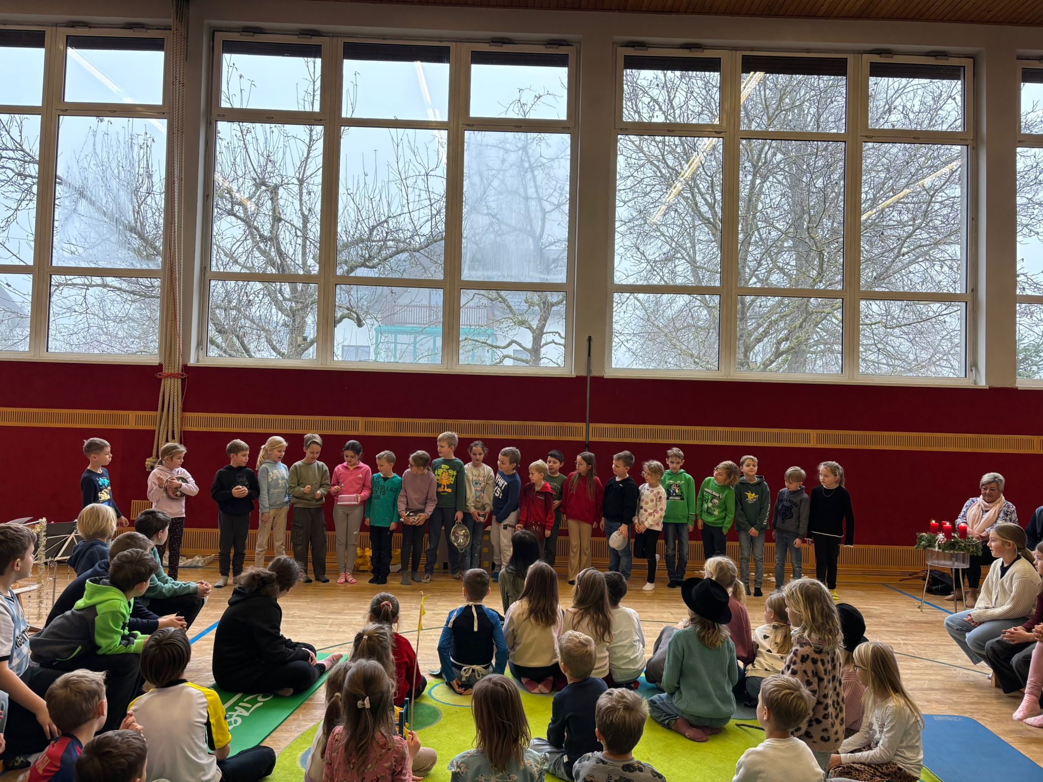 Kurz vor den Weihnachtsferien haben wir unsere ortsansässigen Senioren in die Schule eingeladen und sie mit Liedern, Gedichten und Vorstellungen überrascht. Zum Schluss gab es für jeden Gast ein kleines selbst gebasteltes Geschenk. Schön, dass es diese Begegnungen zwischen Jung und Alt gibt!