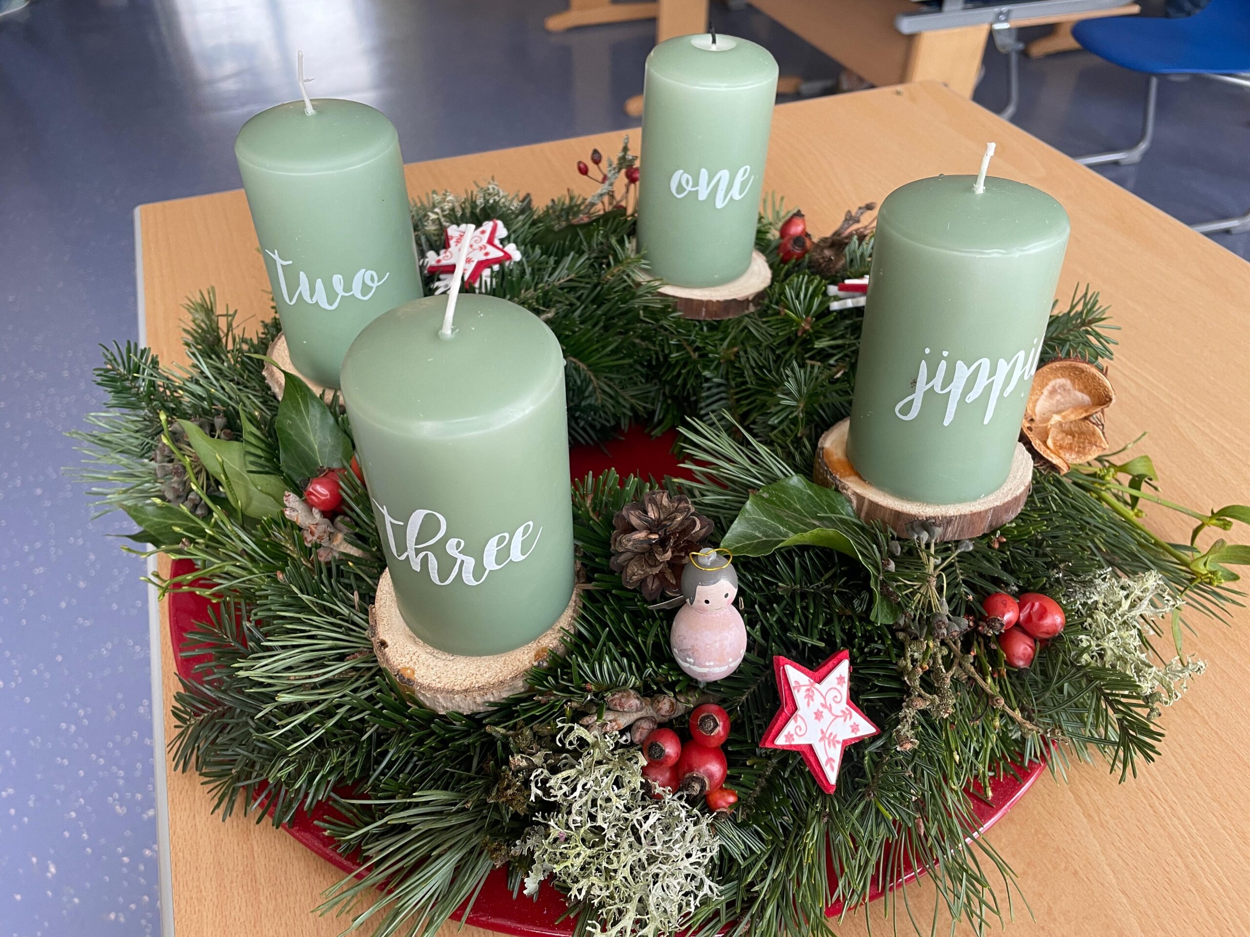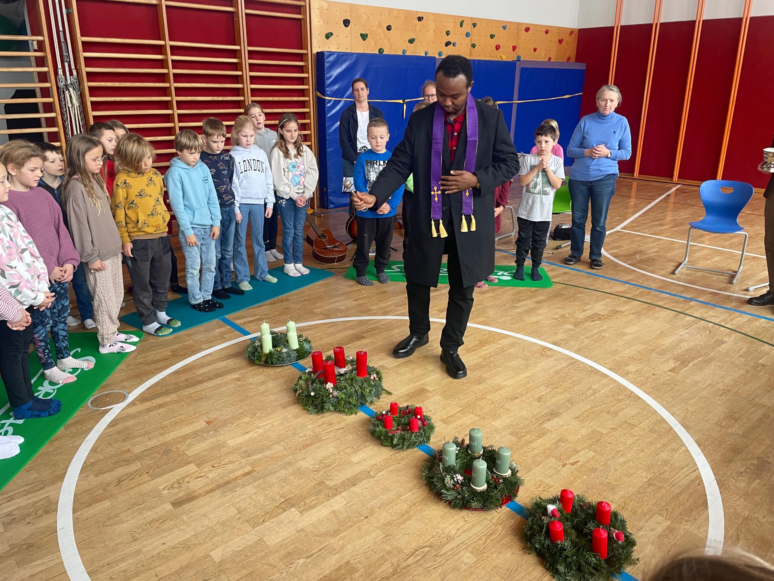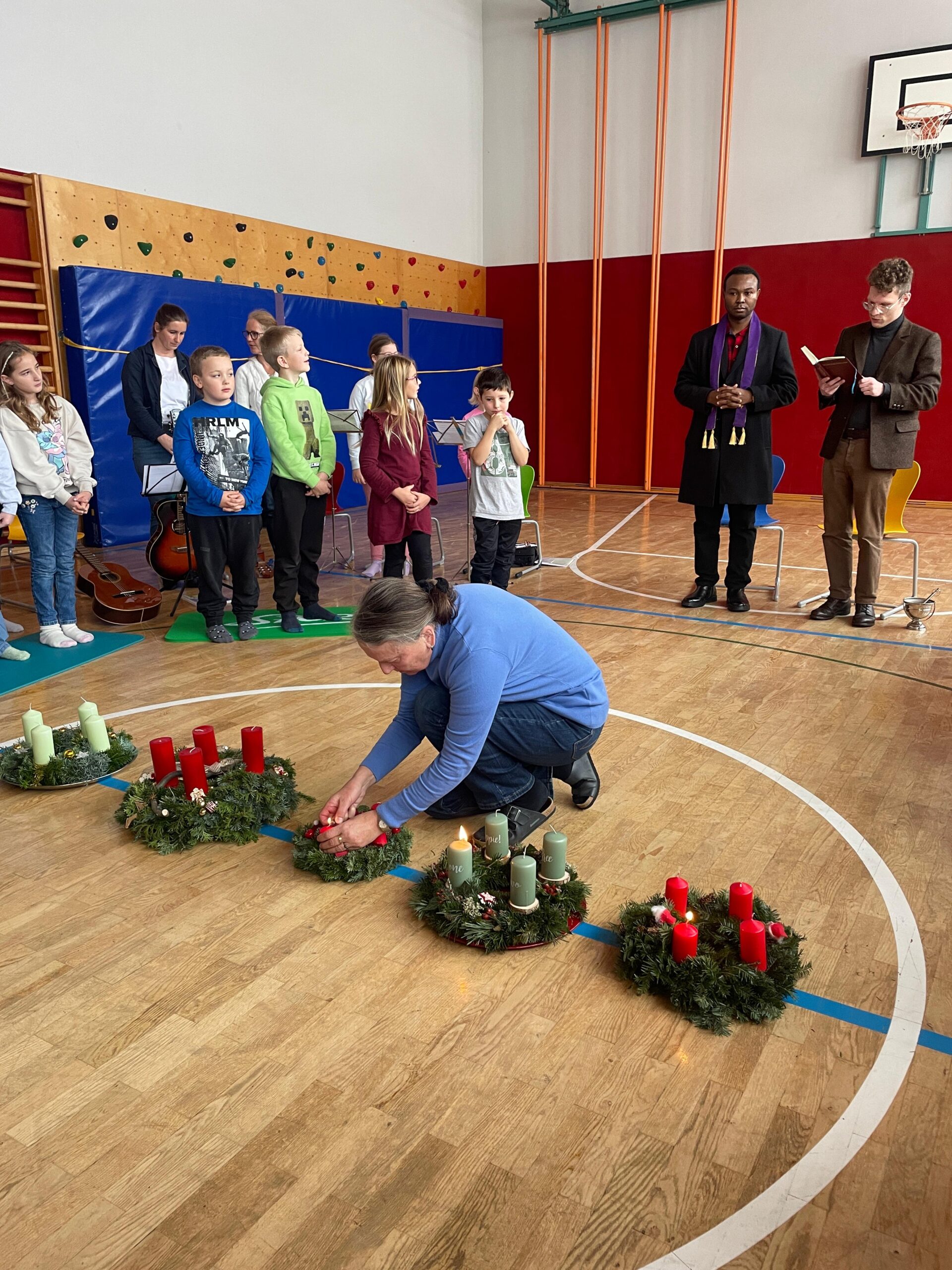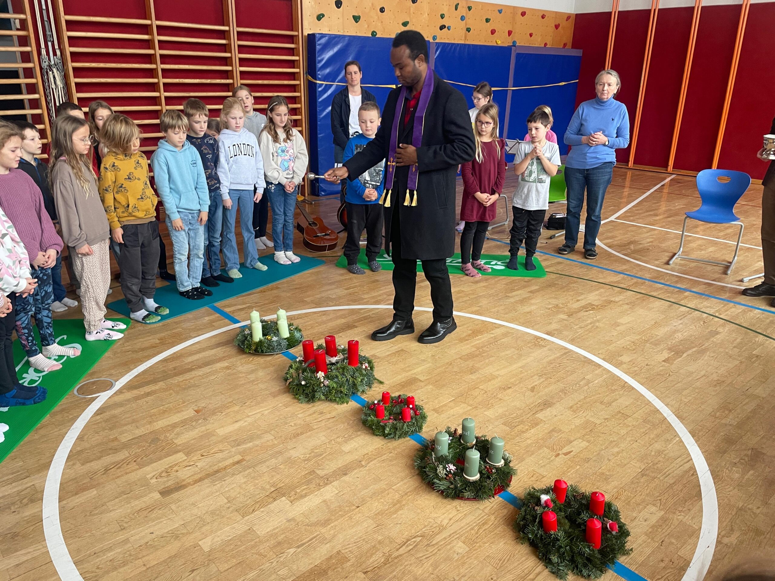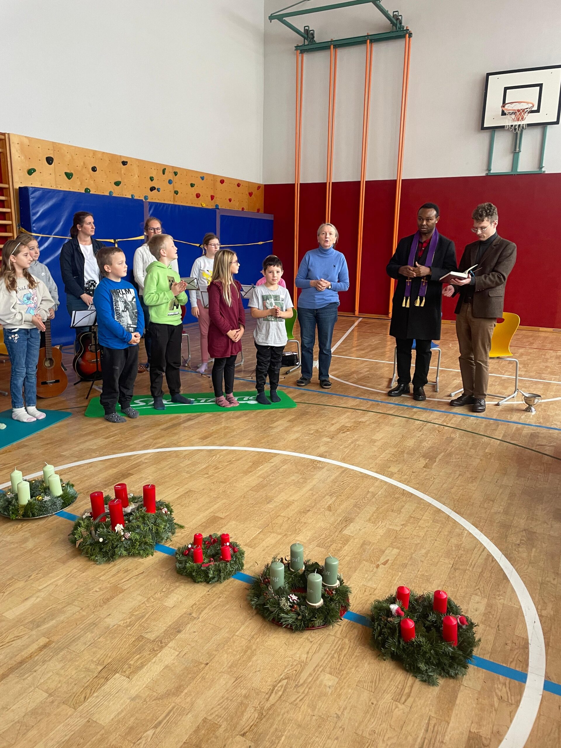 Unser gemeinsamer Sozialkreis (SOK) im Dezember mit Adventkranzweihe. Der neue Kaplan Emmanuel Ajoku und sein Pastoralassistent Lukas Hölzl besuchten uns in der Schule und stellten sich vor. Danke an unsere Religionslehrerin Frau Preuer für die Vorbereitungen dafür!