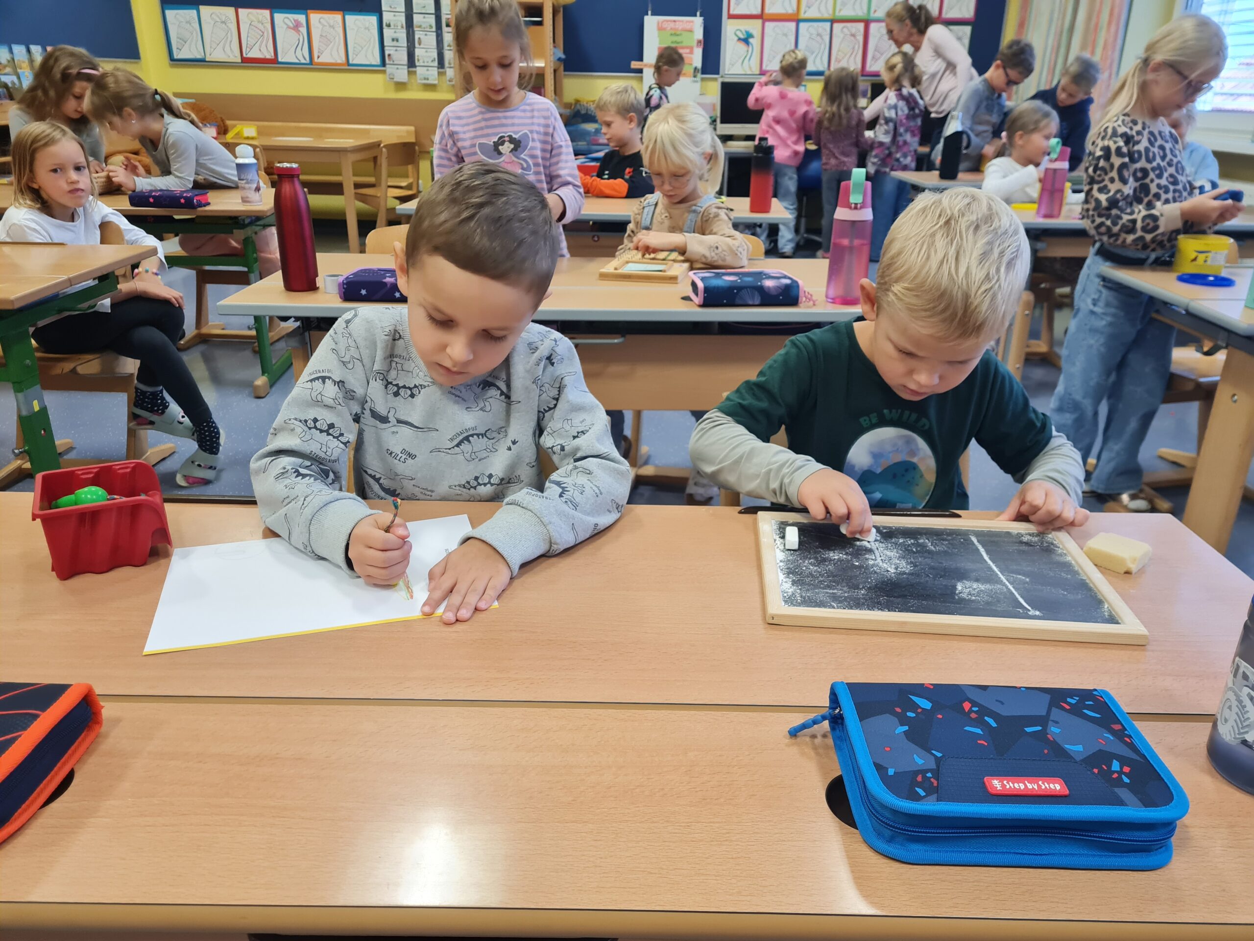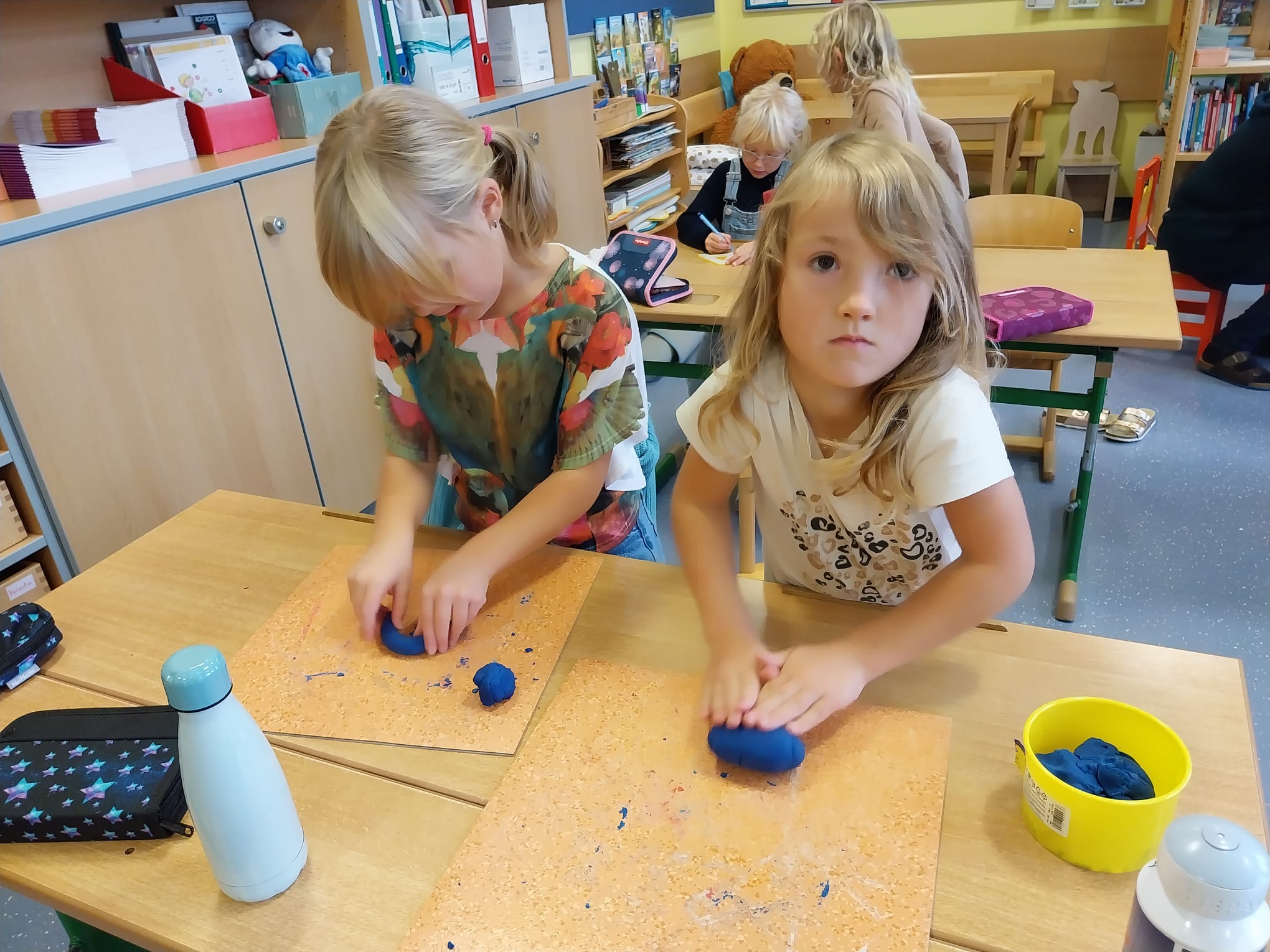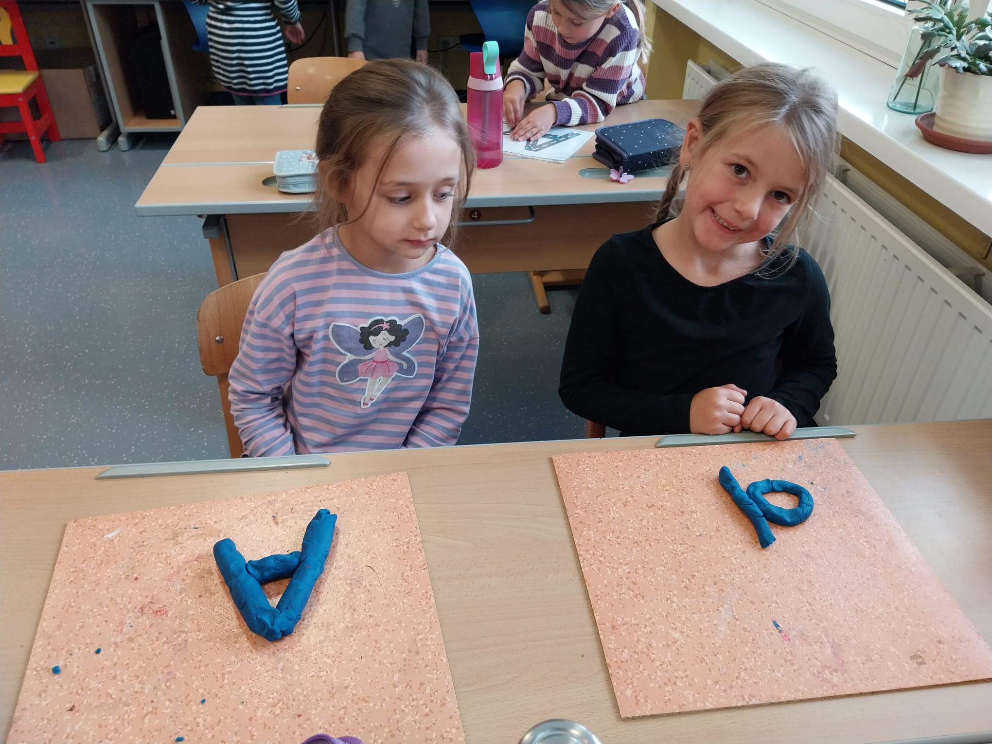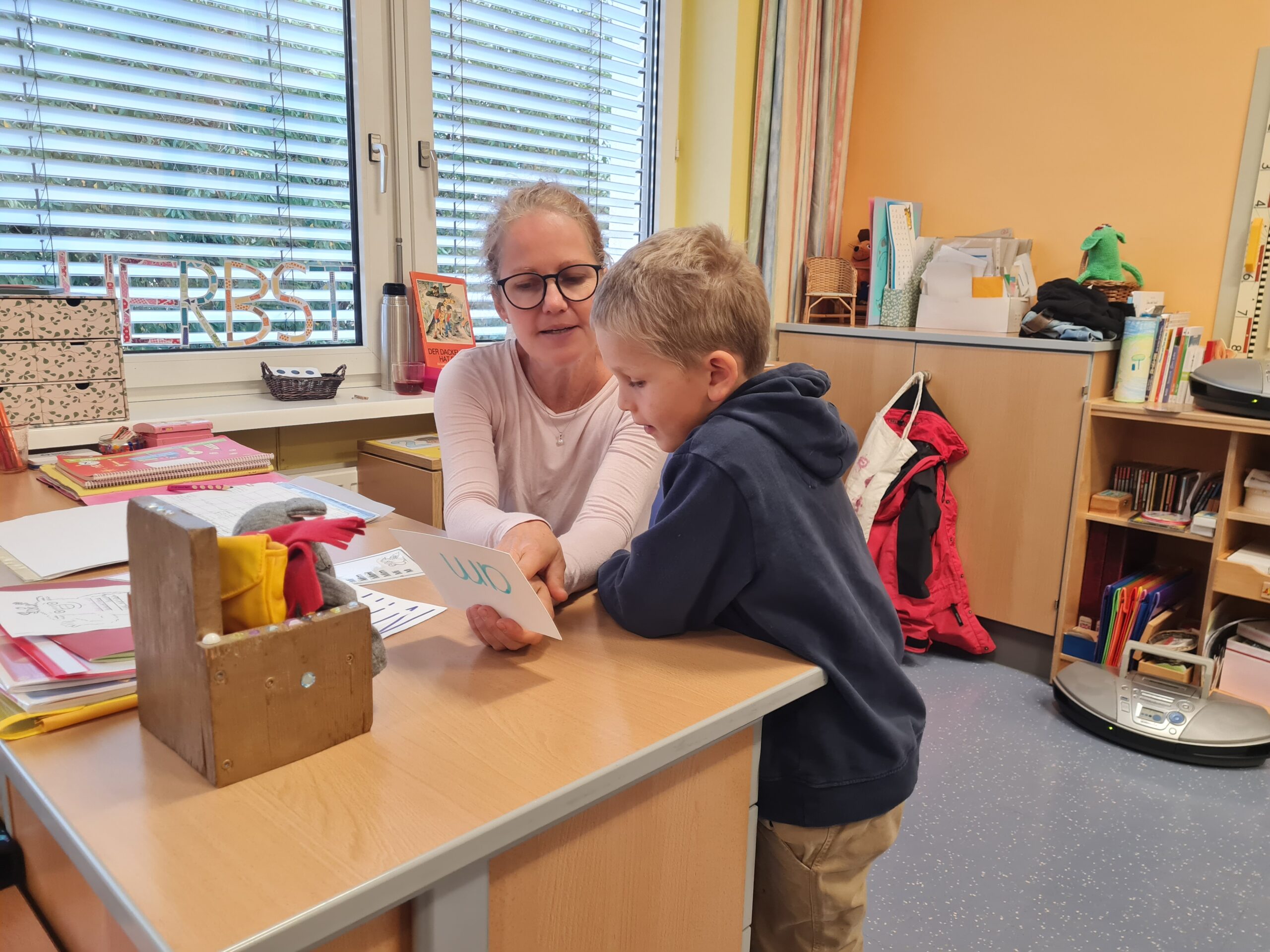 Stationen in der 1. Klasse Fleißig gearbeitet wird an verschiedenen Stationen zu den bereits erlernten Buchstaben. Auch im Förderunterricht wird kreativ gelernt.