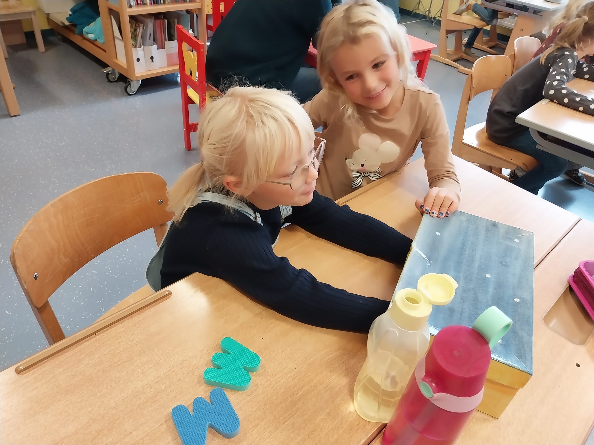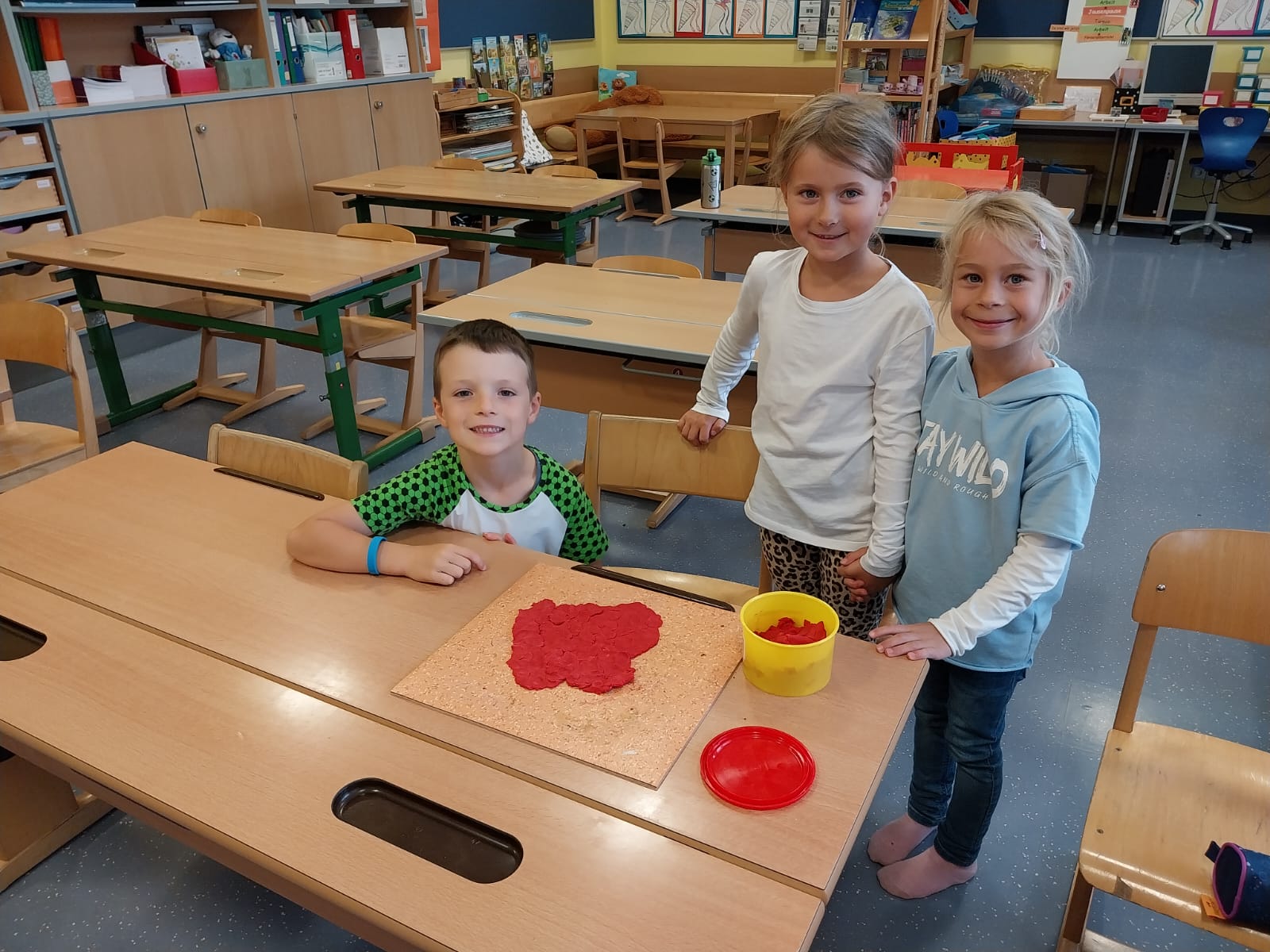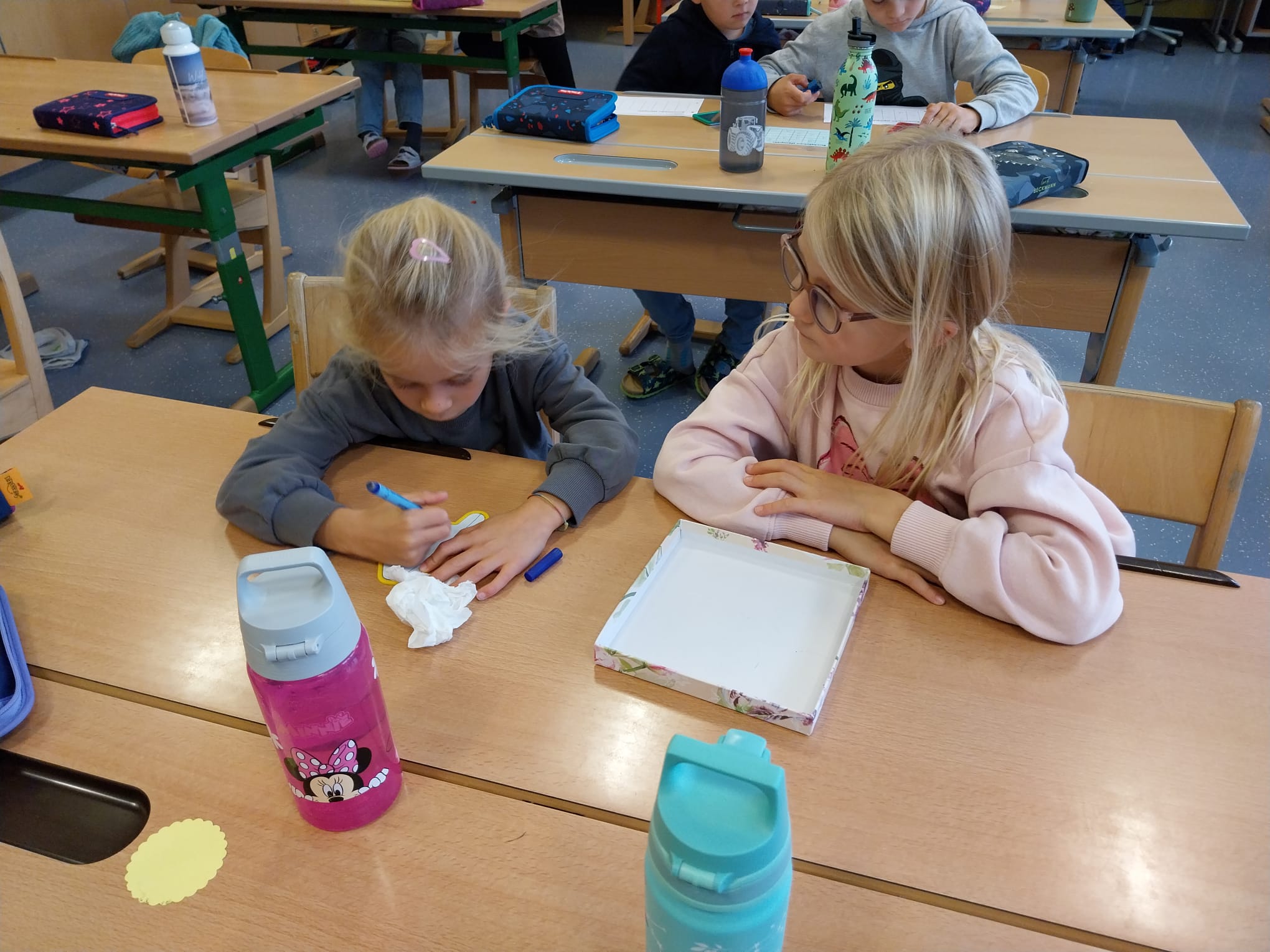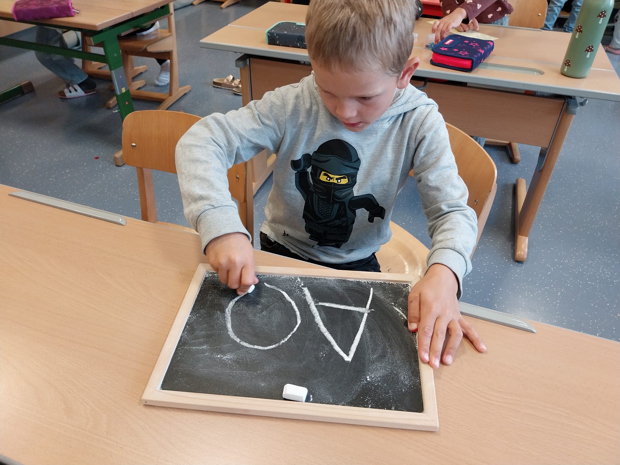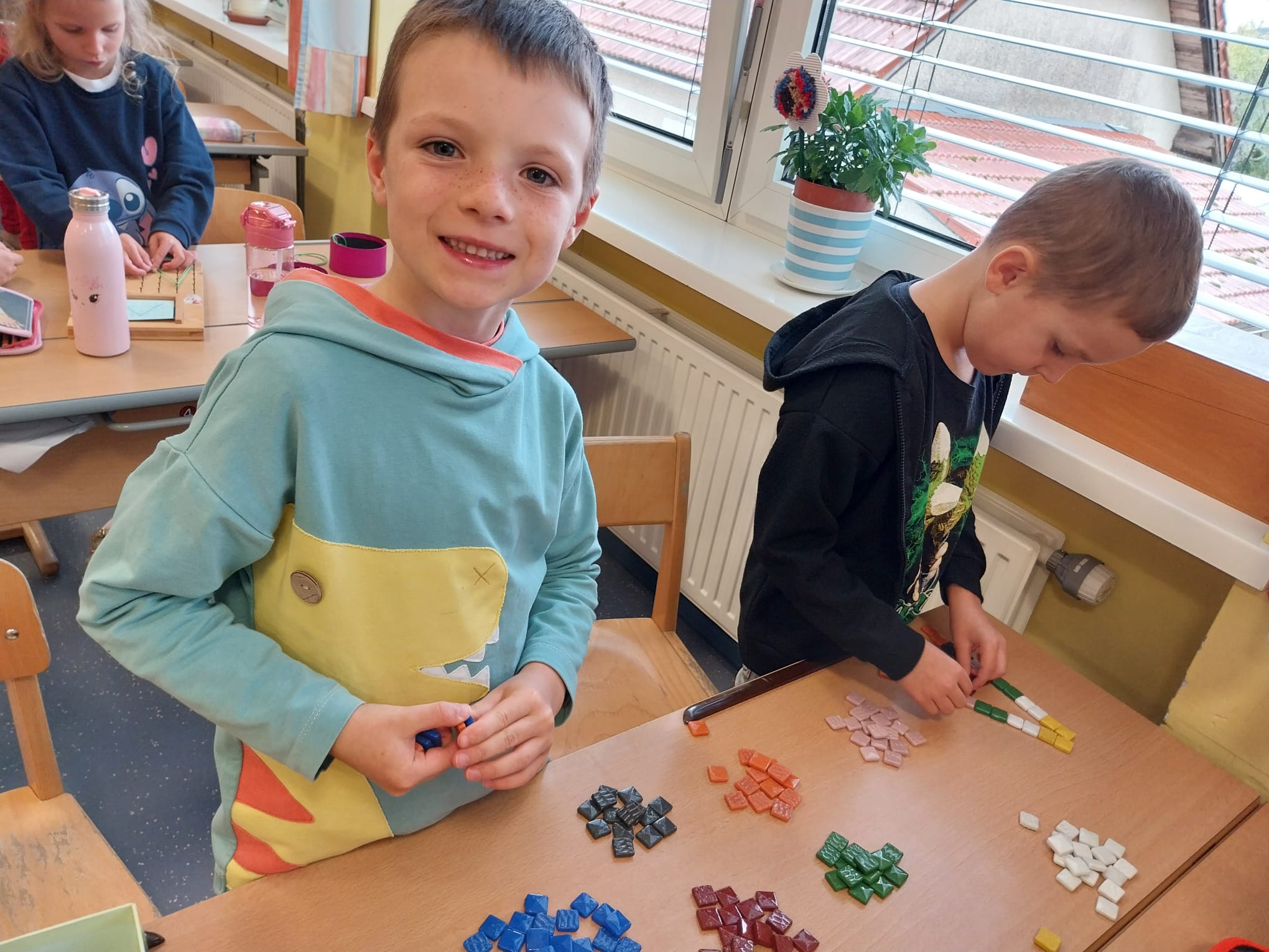 Stationen in der 1. Klasse Fleißig gearbeitet wird an verschiedenen Stationen zu den bereits erlernten Buchstaben. Auch im Förderunterricht wird kreativ gelernt.