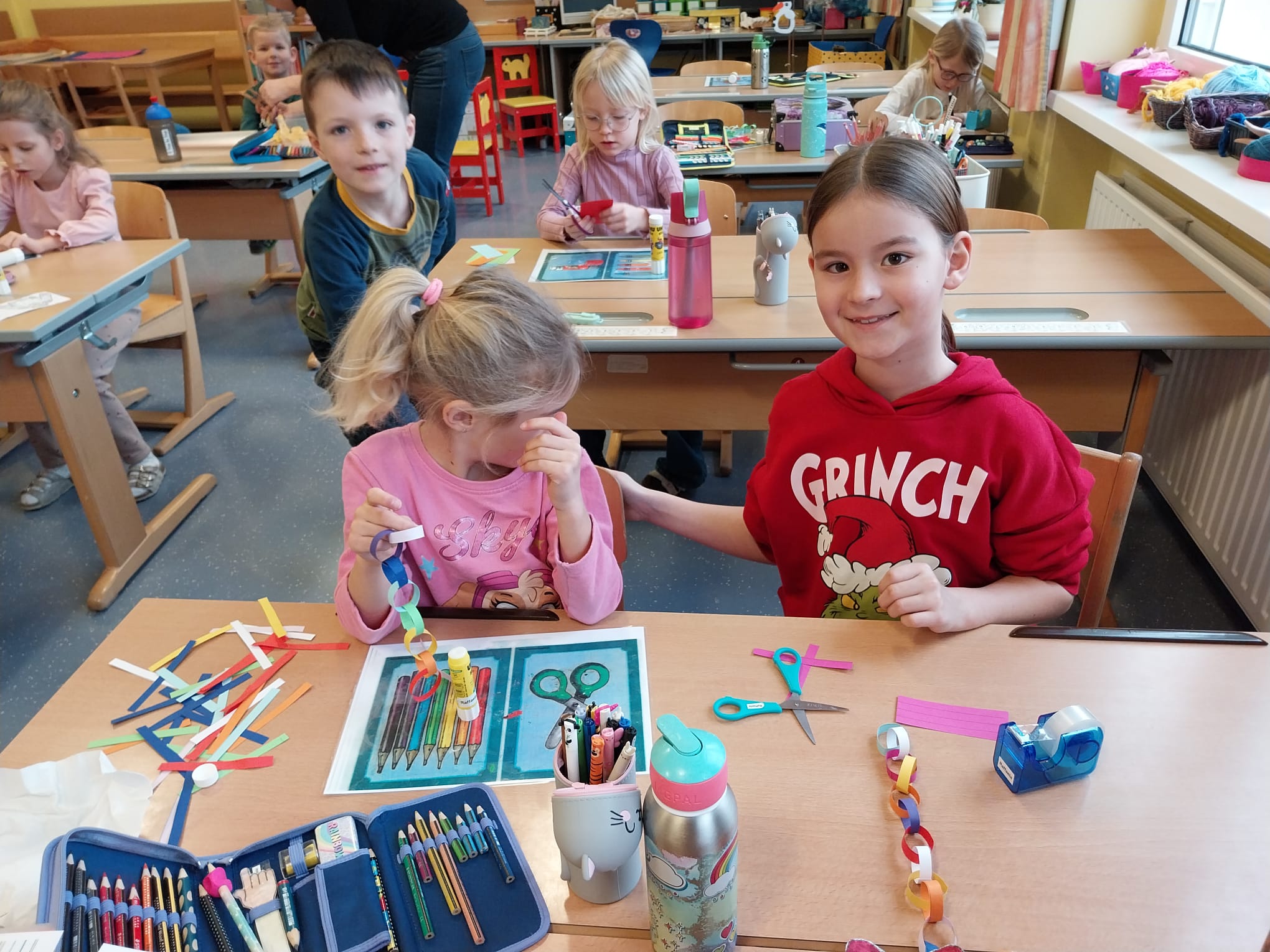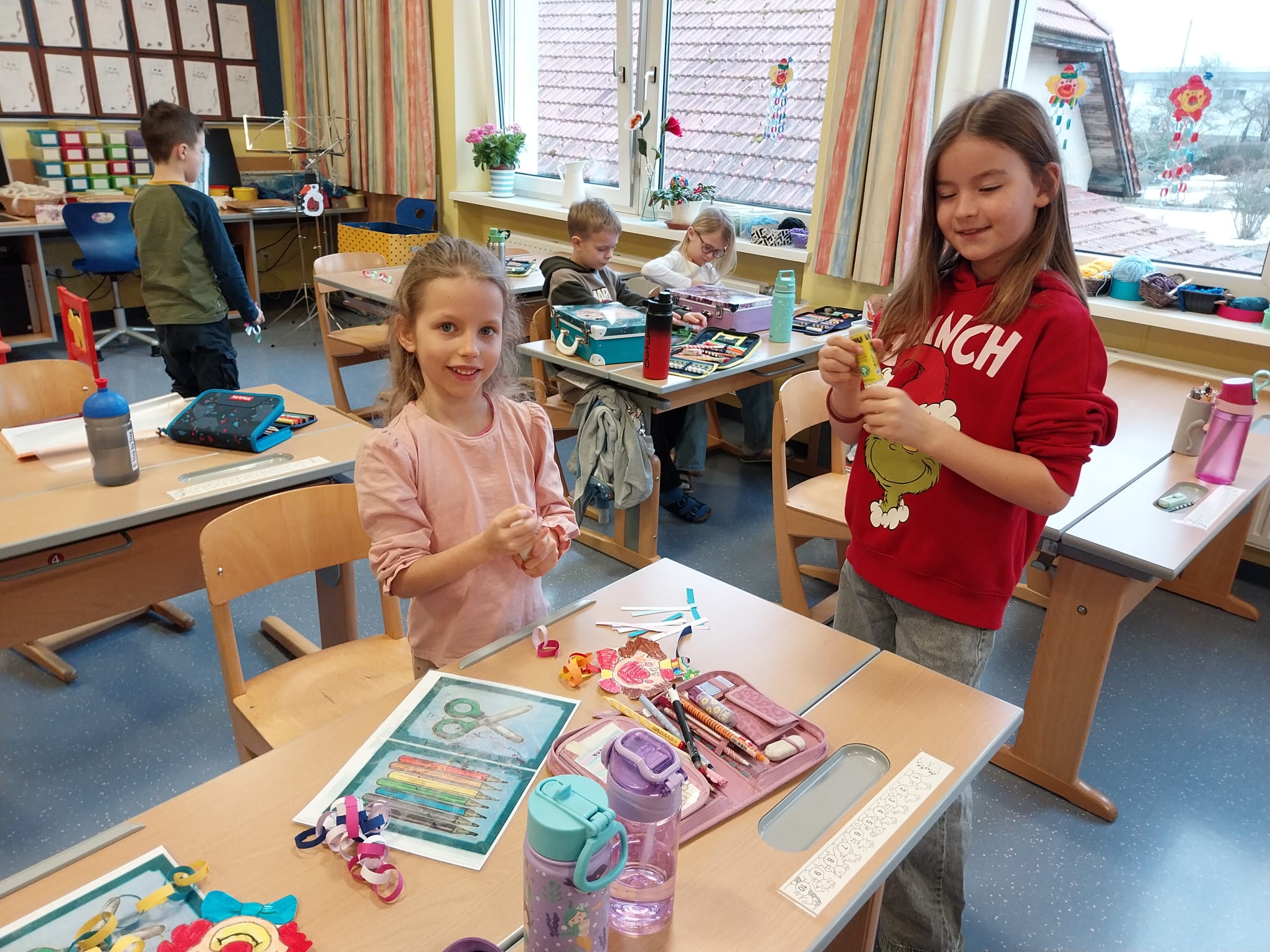 zum Beispiel helfen ein paar Mädchen der 3. Klasse den 1. Klässler in Werken!